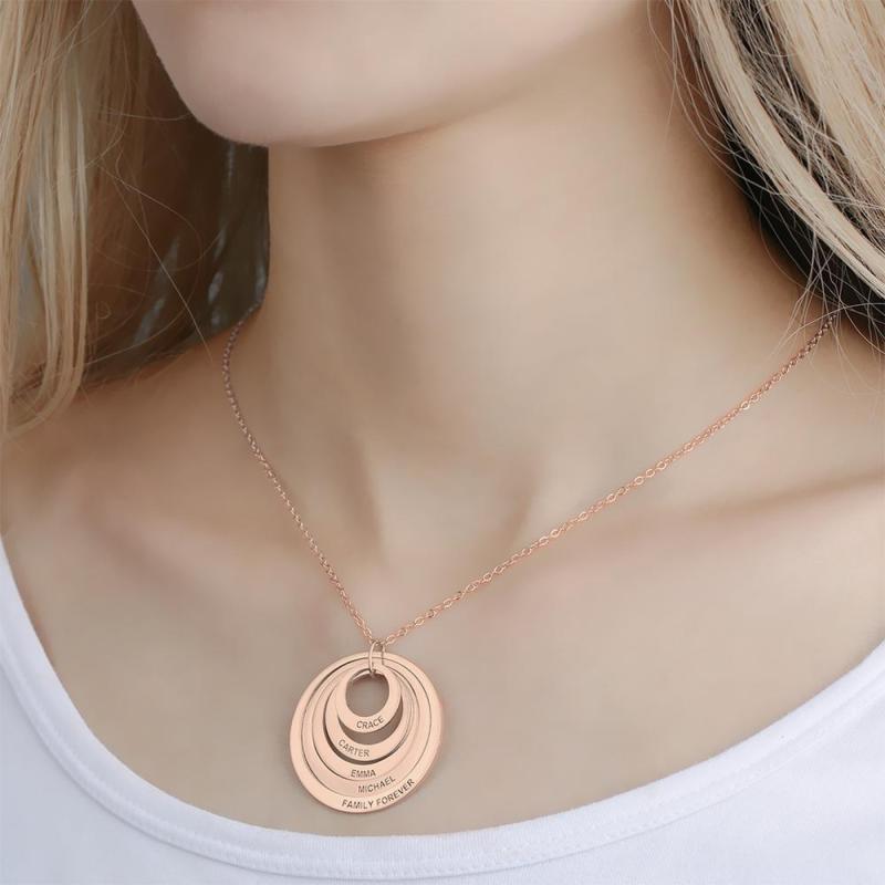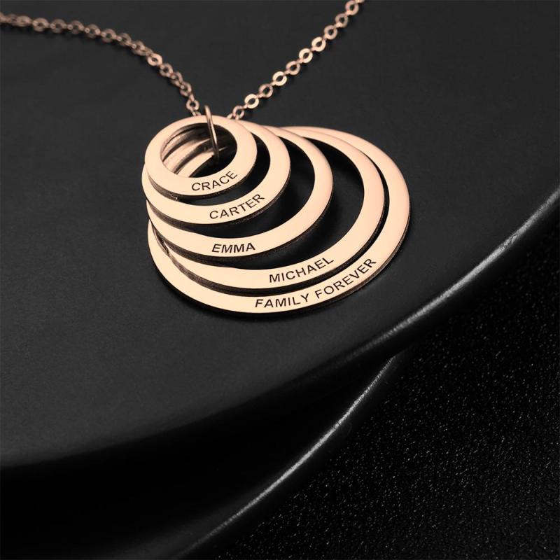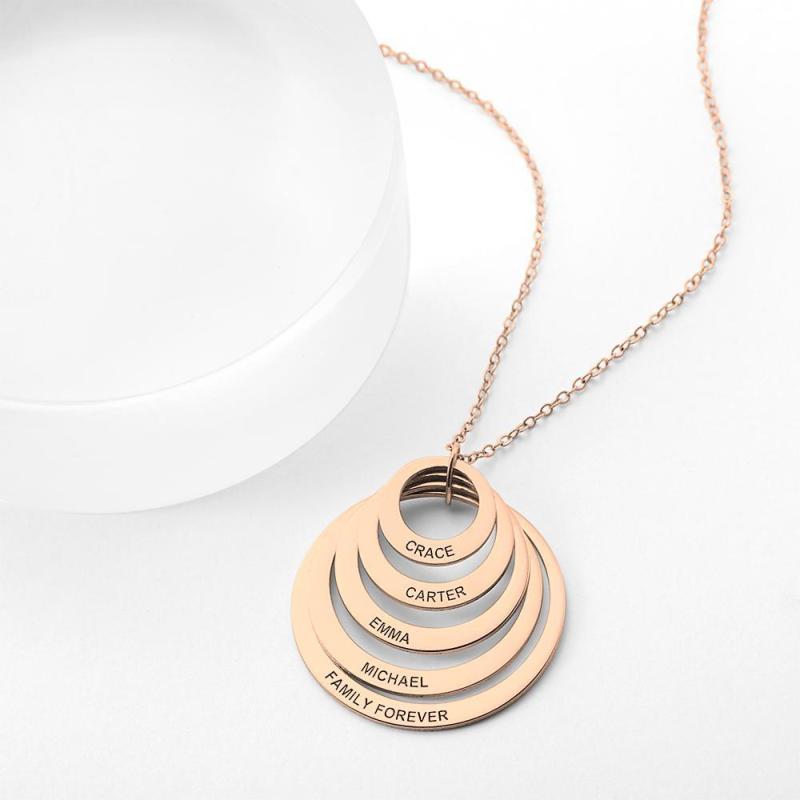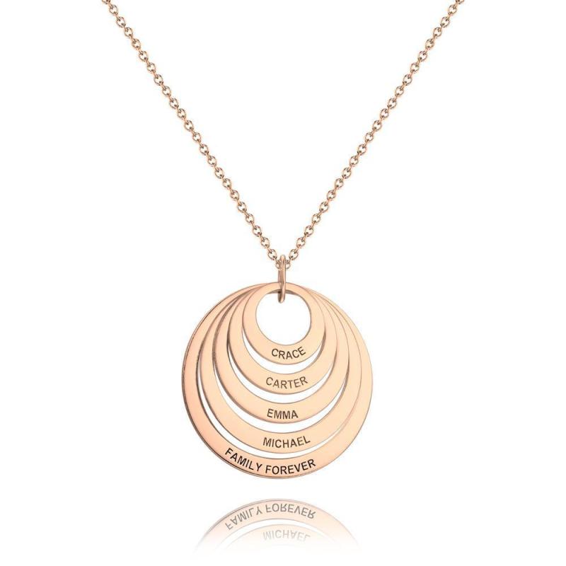 Personalisierte fünf Scheiben gravierte Namenskette Rose vergoldet