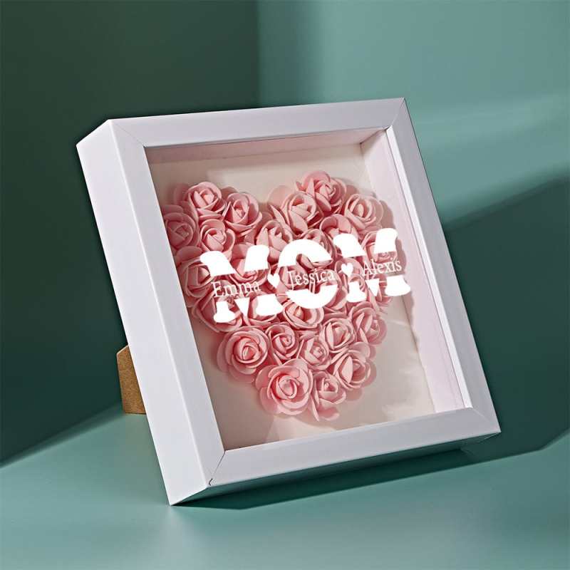 Benutzerdefinierte Blumen-schattenbox Personalisiertes Namensblumen-schattenbox-rahmen-geschenk Für Mamma