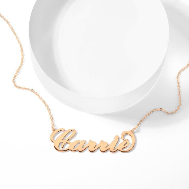 Personalisierte Große Name Halskette, Braut Halskette Rose Gold Plattiert