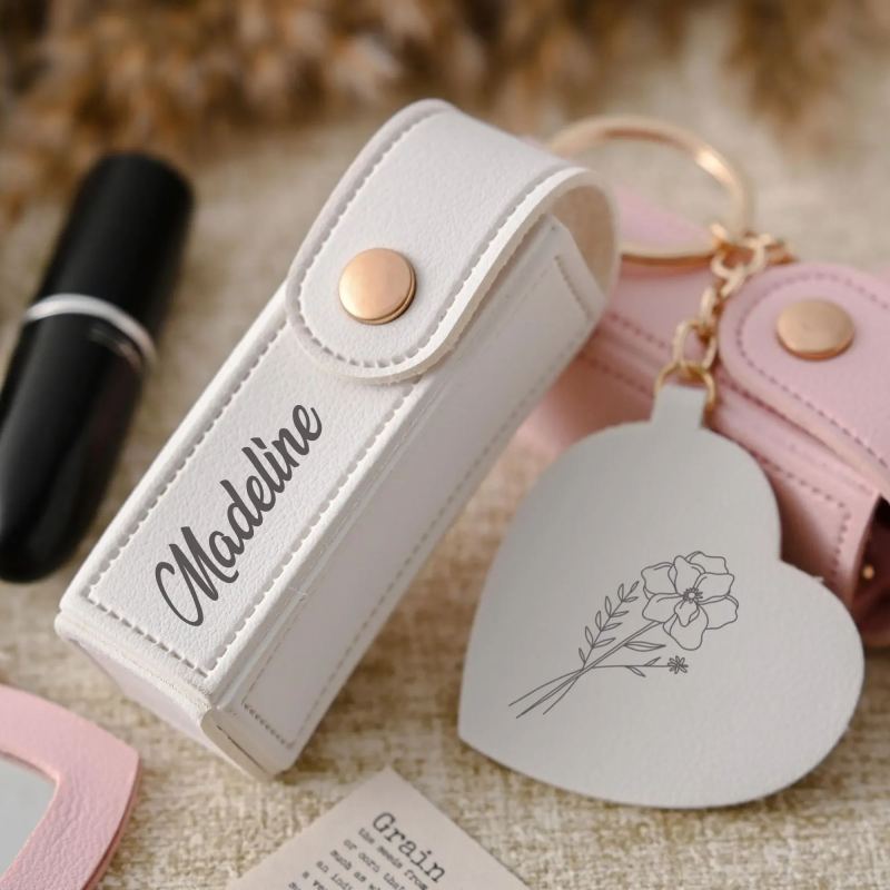 Personalisierter Lippenstiftbeutel-schlüsselanhänger Mit Individuellem Namen, Aufbewahrungstasche Gegen Verlust, Lippenstiftetui Mit Spiegel, Geschenk Für Sie