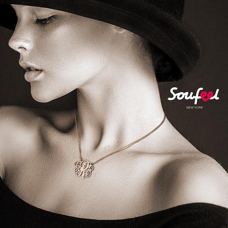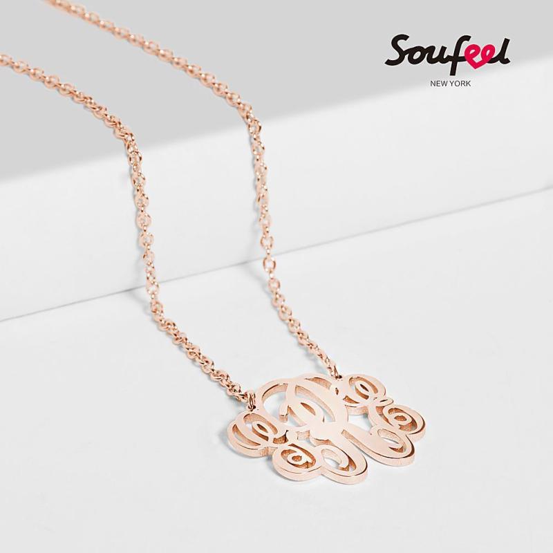 Kleine Ausgefallene Monogramm-Halskette Rosévergoldetes Silber