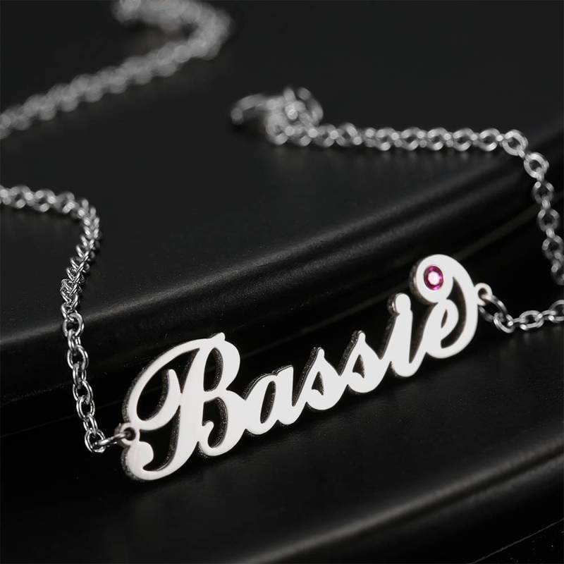 Personalisierte Namen Armband mit benutzerdefinierten Birthstone, Geburtstagsgeschenk Platiniert - Silber