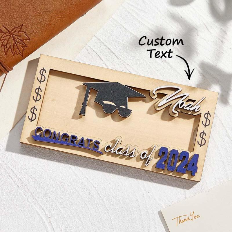 Personalisierter Namens-laserschnitt-abschluss-bargeldhalter Aus Holz, Geldgeschenk Für College-absolventen Der Klasse 2024
