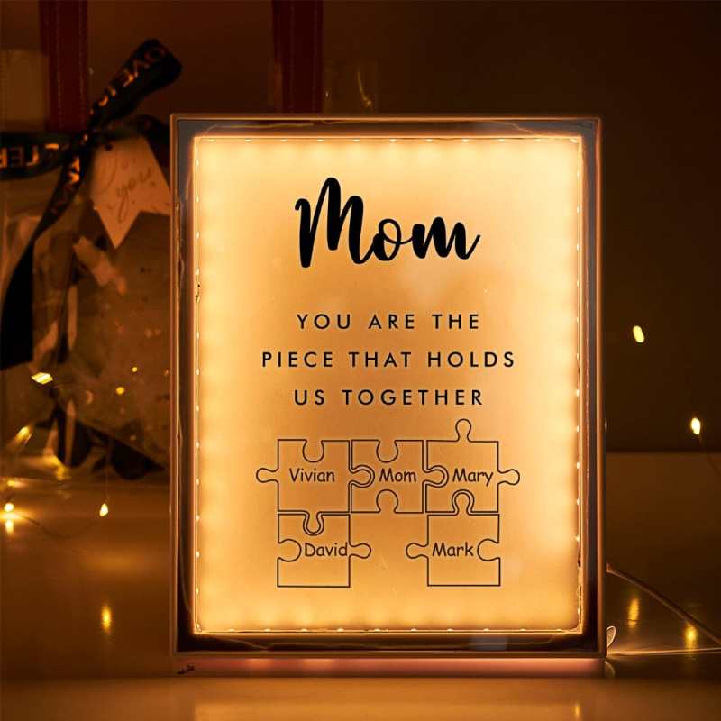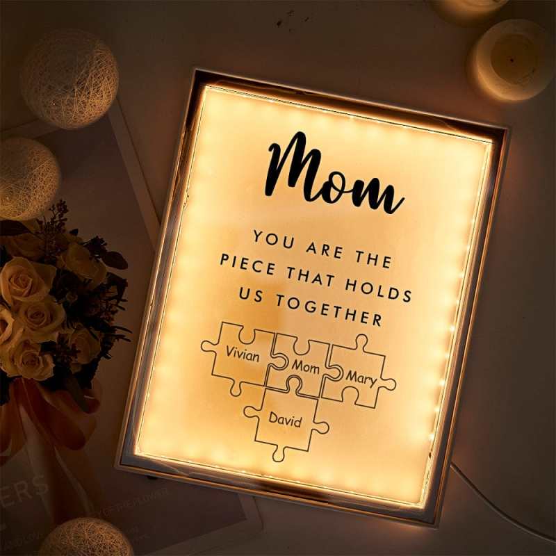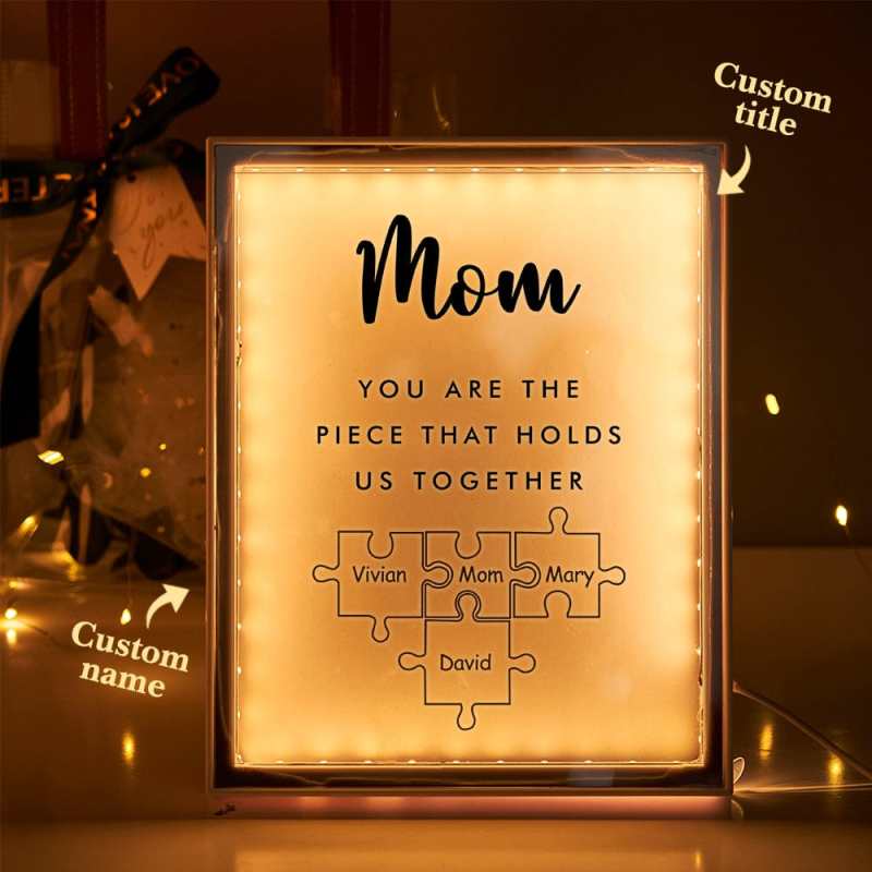 Personalisiertes Spiegellicht Mit Namen Und Individueller Aufschrift „mama, Du Bist Das Stück, Das Uns Zusammenhält“, Nachtlicht Für Mama