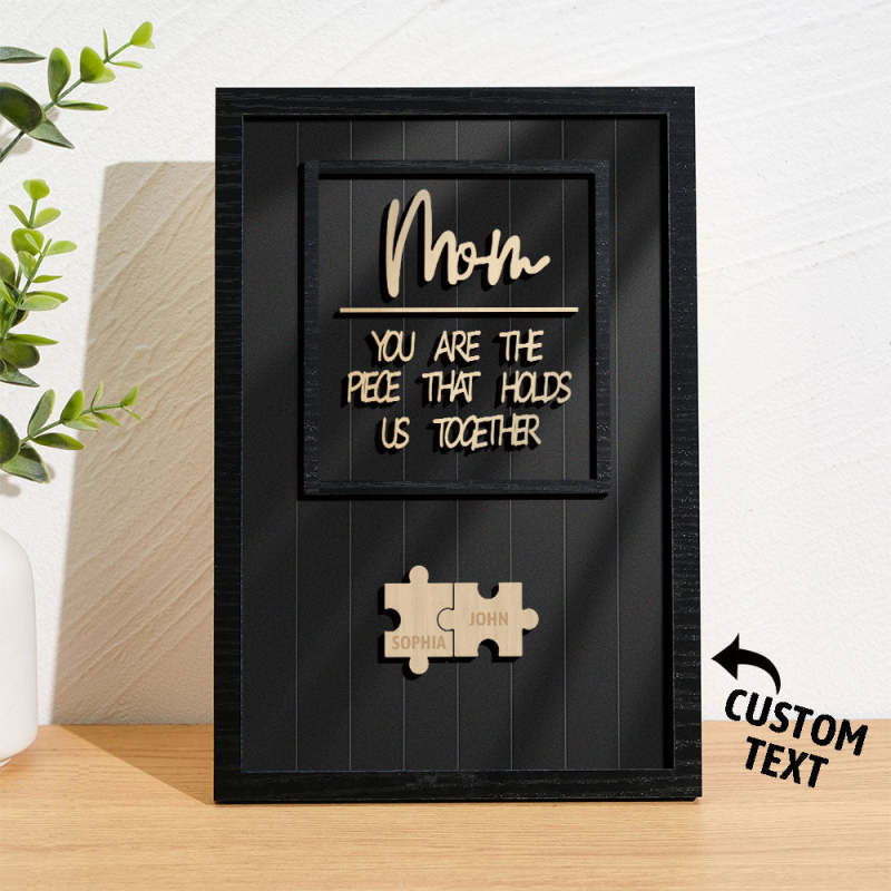 Personalisiertes Namens-mom-puzzle Mit Holzrahmen, Schild „du Bist Das Stück, Das Uns Zusammenhält“.