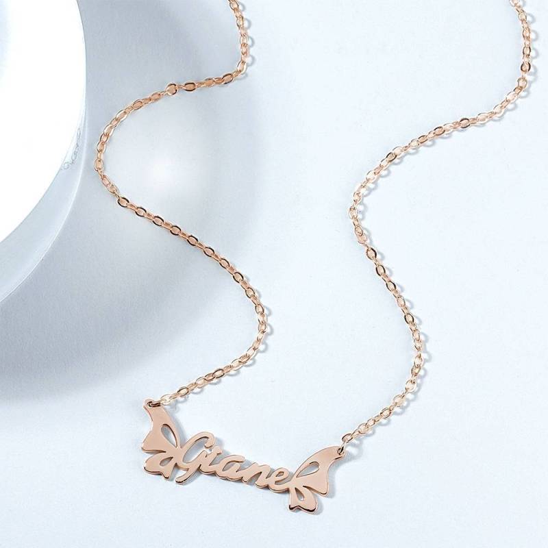 Personalisierte Namenshalskette, Schmetterlingshalskette - Rose Gold