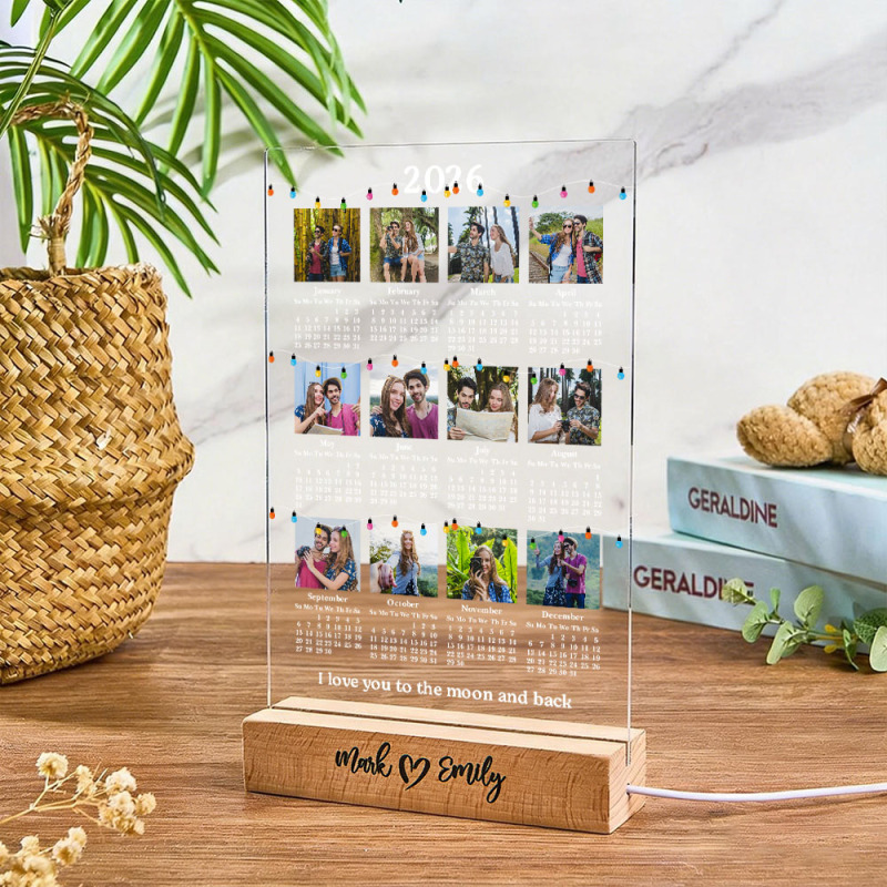 Personalisierter Fotokalender 2026 Mit Led-beleuchtung, Individuell Gestaltbar Mit Paarfotos, Leuchtendes Nachtlicht, Tischkalender 2026, Neujahrs- Und Valentinstagsgeschenk