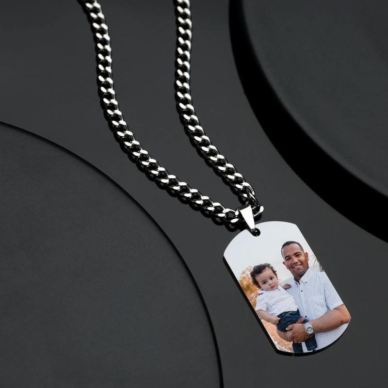 Personalisierte Foto Eingraviert Halskette Edelstahl Geschenk Für Papa