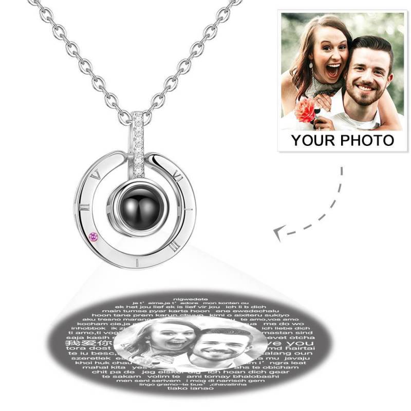 Ich liebe dich Halskette in 100 Sprachen Projektion Foto Halskette Runde Silber
