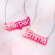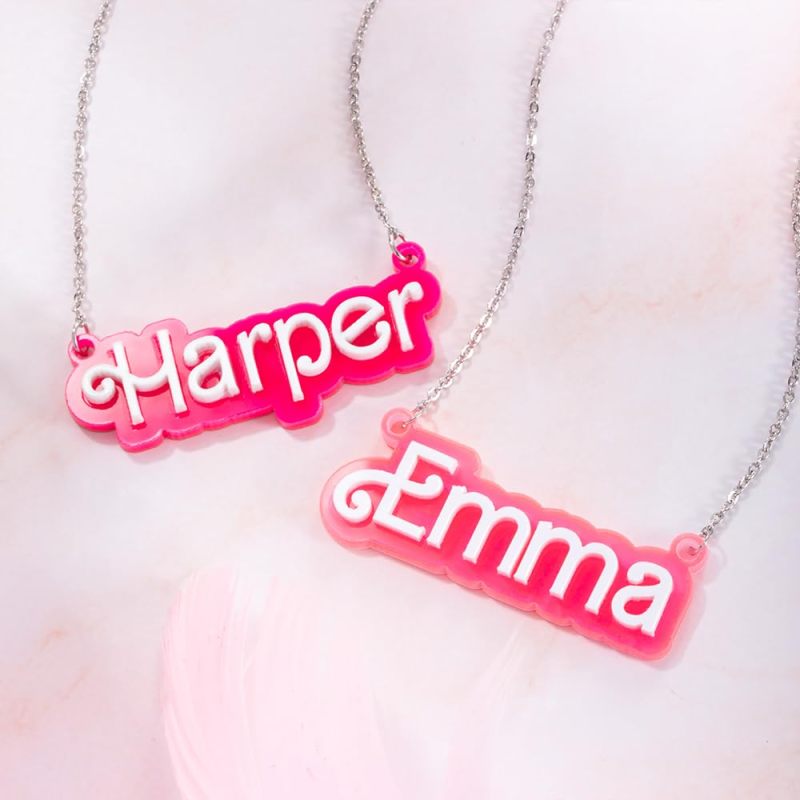 Personalisierte Rosa Und Weiße Barbi-puppe-acryl-halskette Mit Namen, Geburtstag, Valentinstag, Geschenk Für Sie