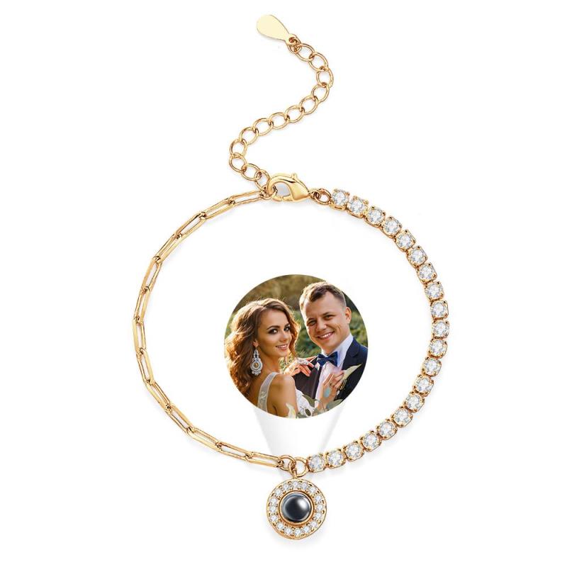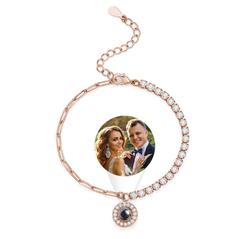 Personalisiertes Projektionsarmband Mit Rundem Anhänger Und Kette Als Geschenk