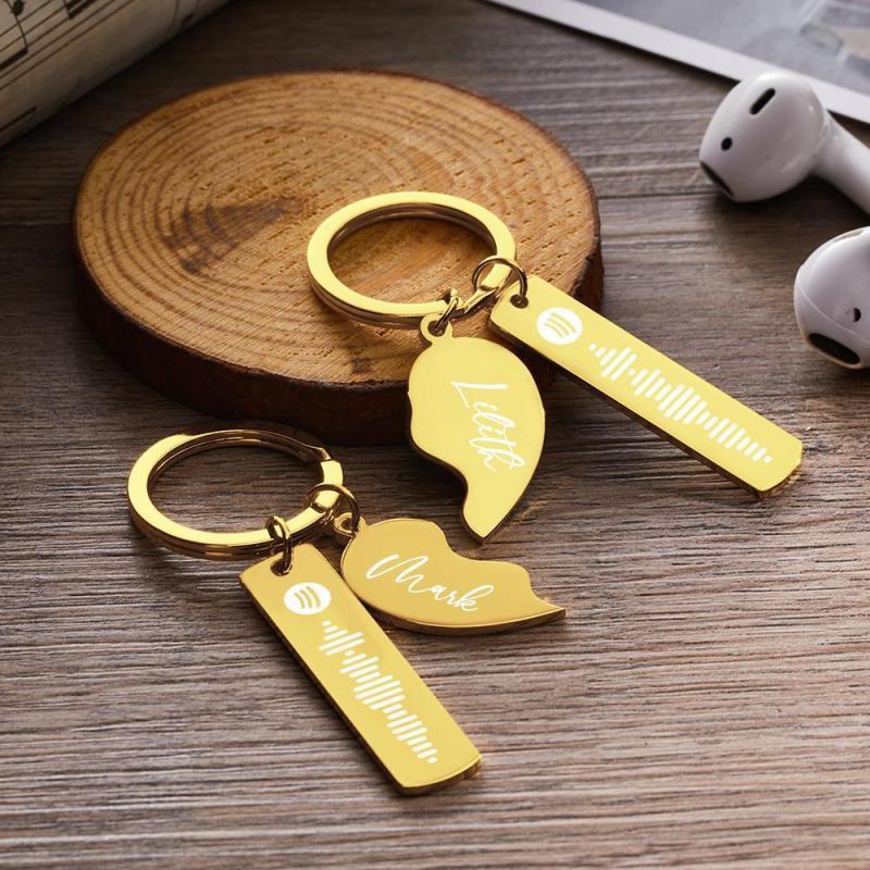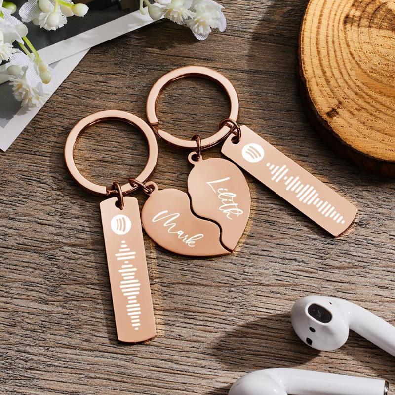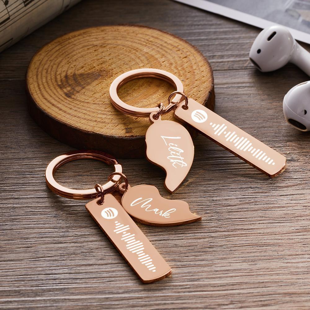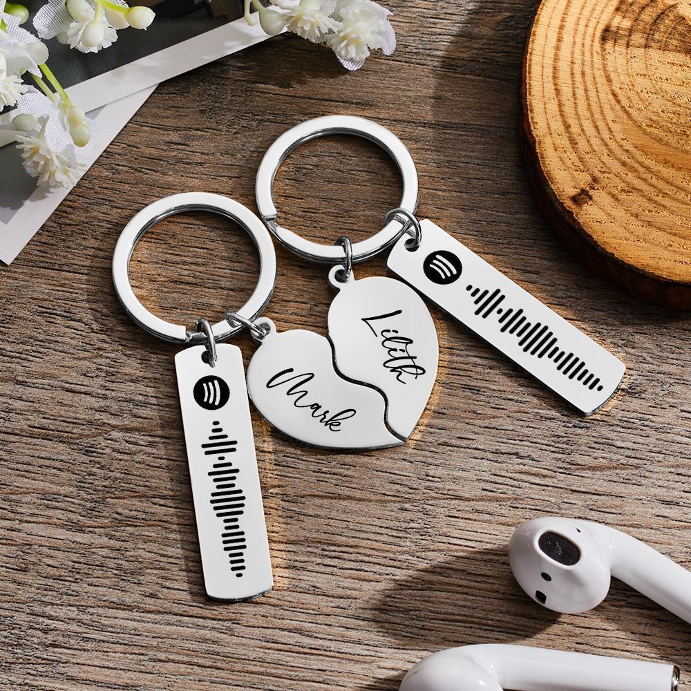 Personalisierter Musik Code Schlüsselanhänger Benutzerdefinierter Name in Herzform Schlüsselanhänger Valentinstagsgeschenk für Sie