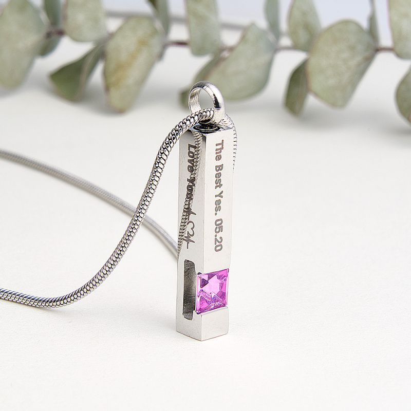 Personalisierte Urnenhalsketten Für Asche, Edelstahl-stab, Erinnerungshalskette Für Asche, Kristall-geburtsstein-aschehalskette