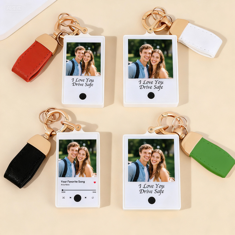 Personalisierter Schlüsselanhänger Mit Foto Und Text – Ein Bedeutungsvolles Geschenk Mit Ihrer Individuellen Musik Oder Aufnahme Für Papa, Mama, Familie Und Freunde