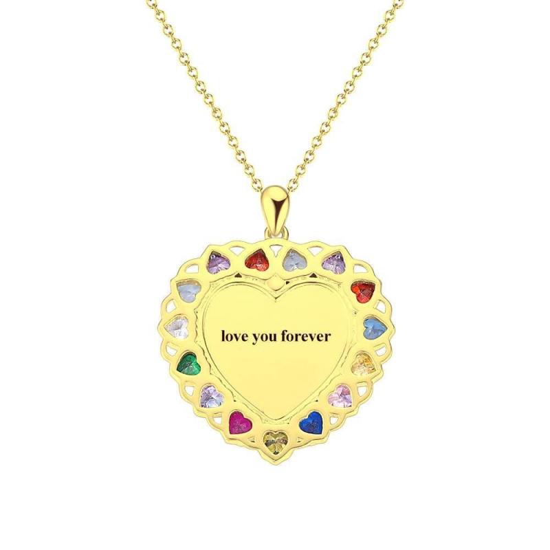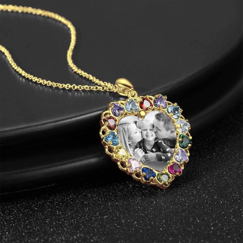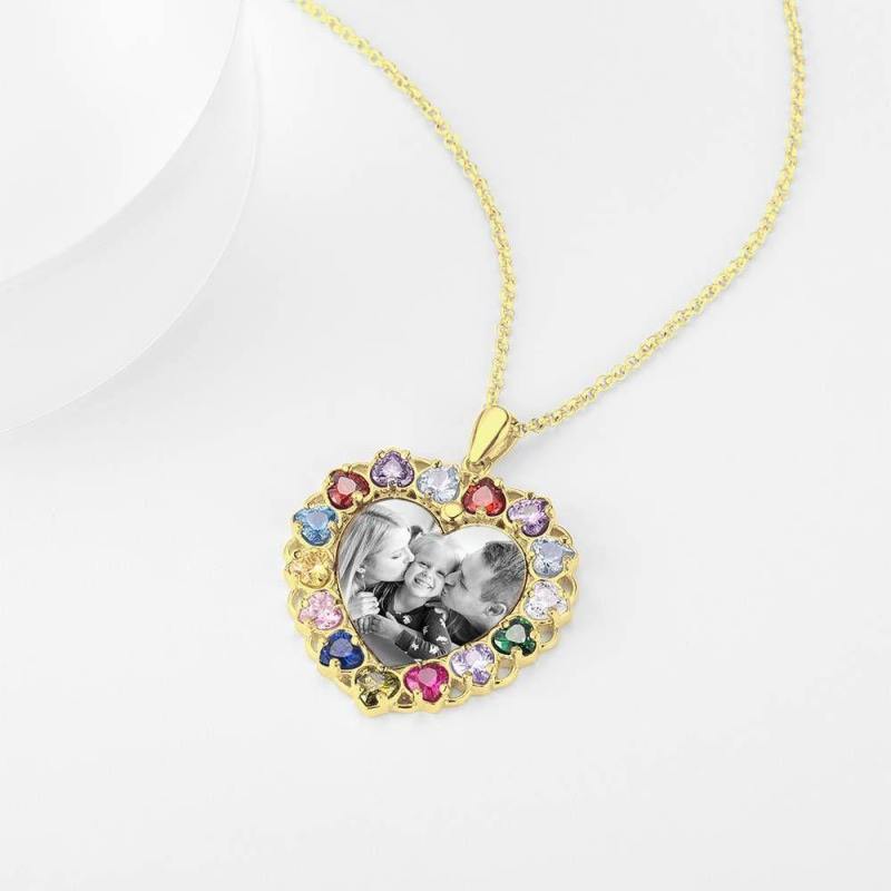 Foto Graviert Halskette Strass Kristall Bunt, Herzform Foto Halskette Bestes Geschenk 14K Plated Gold Golden - Fotokopieren