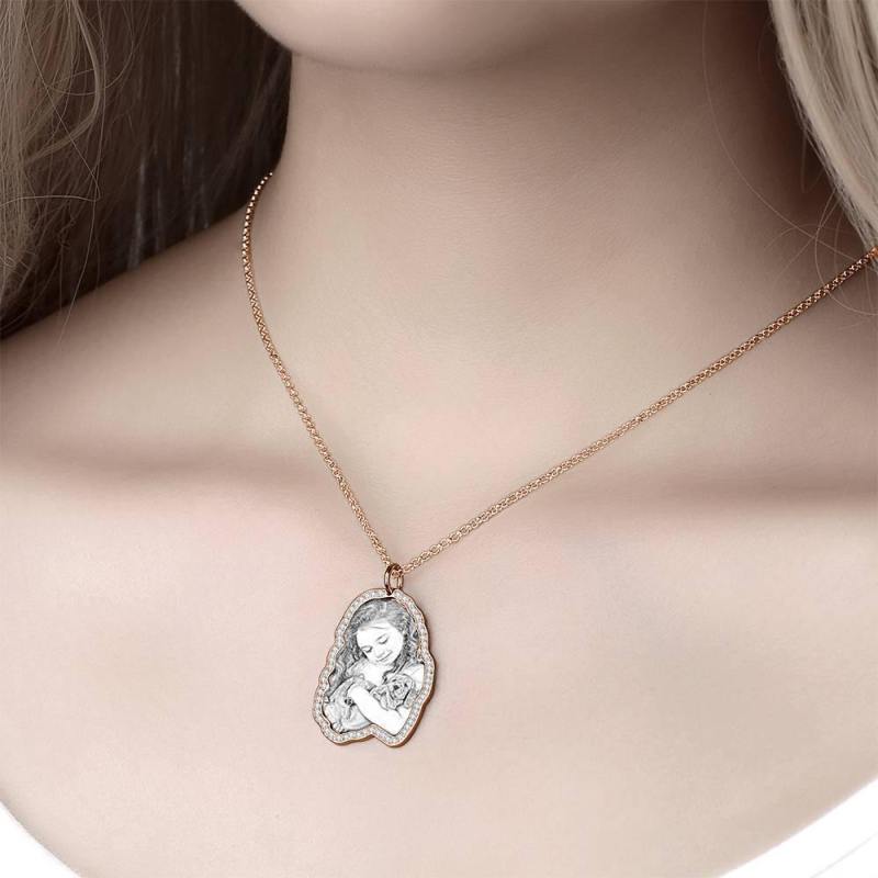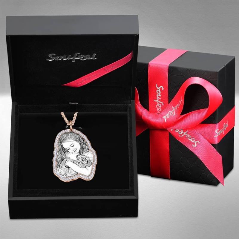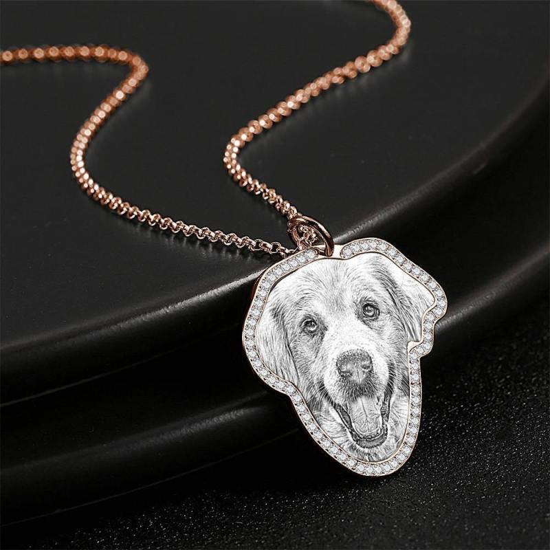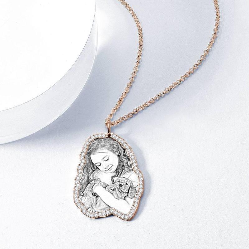 Foto Graviert Halskette, Strass Kristall Memorial Geschenk Halskette Rose Gold Plattiert - Skizze