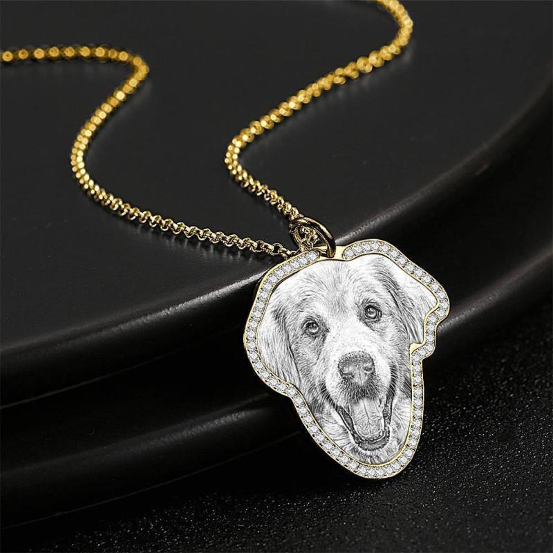 Foto Gravierte Halskette, Strass Kristall Perfektes Geschenk Halskette 14K Gold Plattiert - Skizze