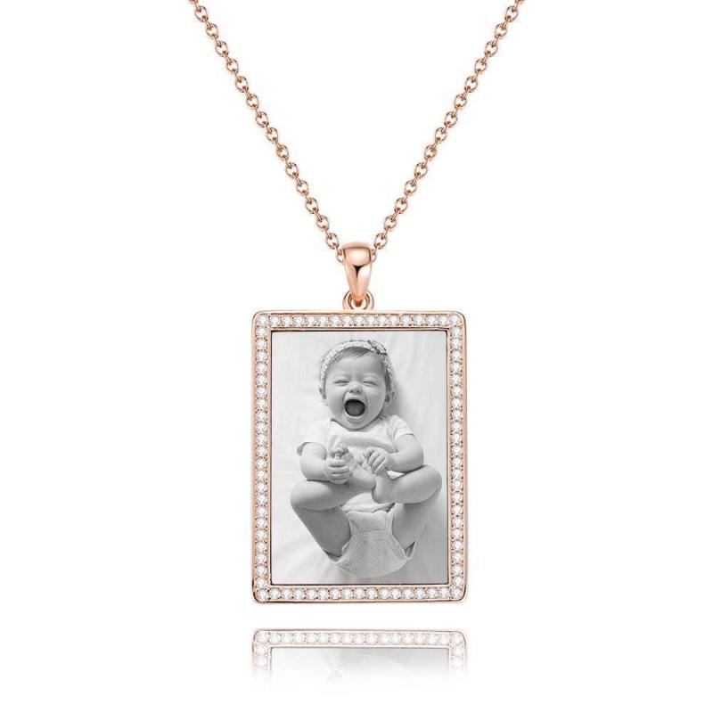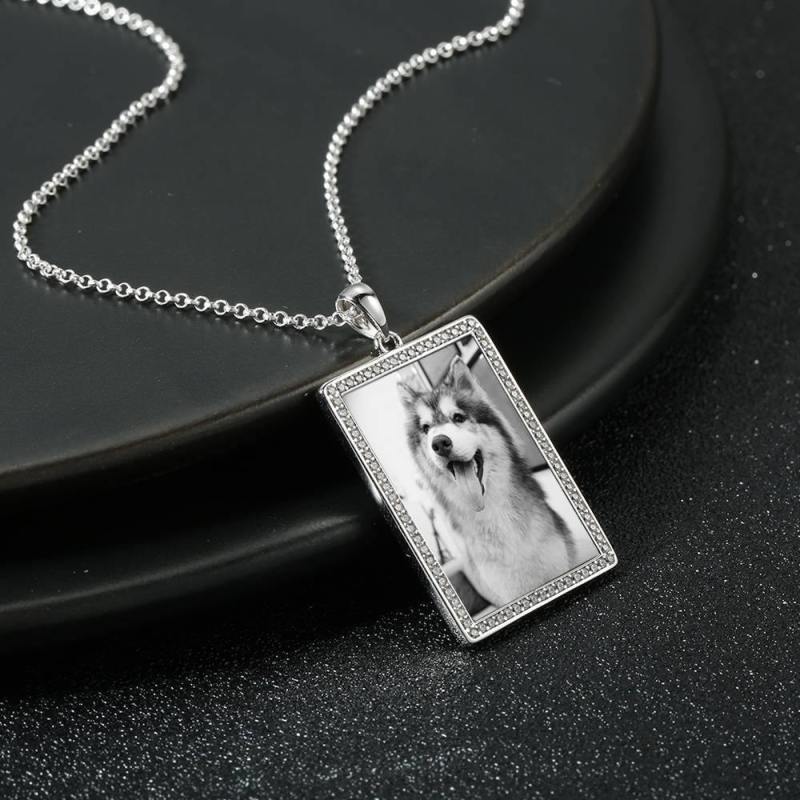 Foto Graviert Halskette Strass Kristall, Foto Halskette Bestes Geschenk Platin Plattiert Silber - Fotokopieren