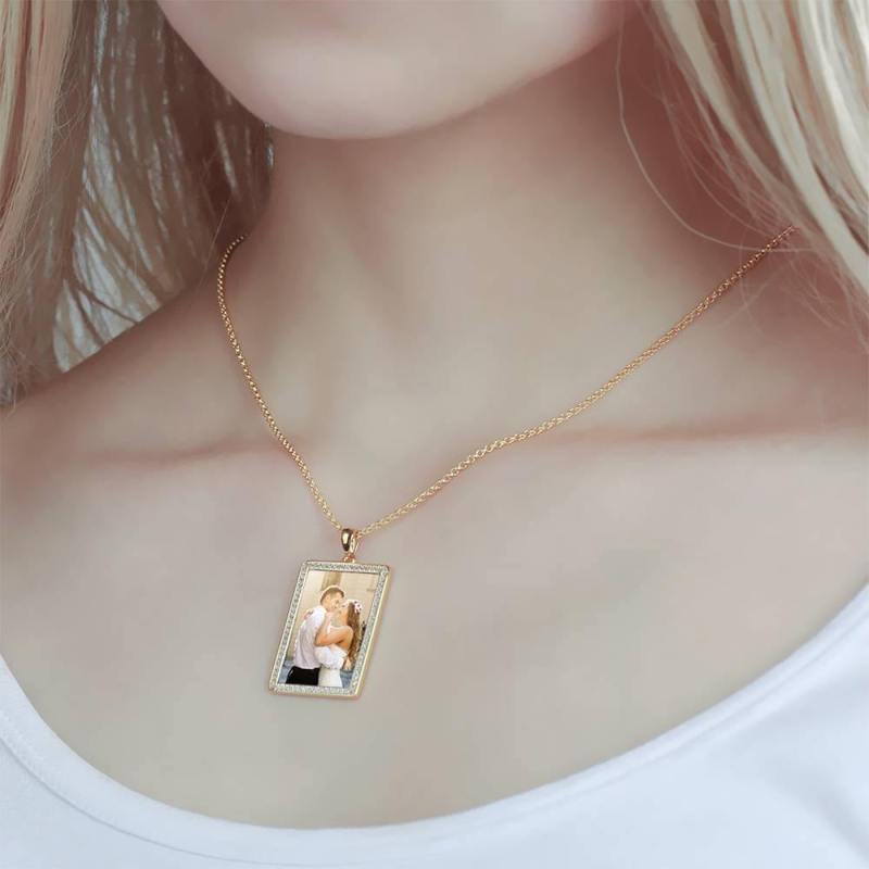 Foto Graviert Halskette Strass Kristall, Foto Halskette Keepsake Geschenk 14K Plated Gold Golden - Colorful