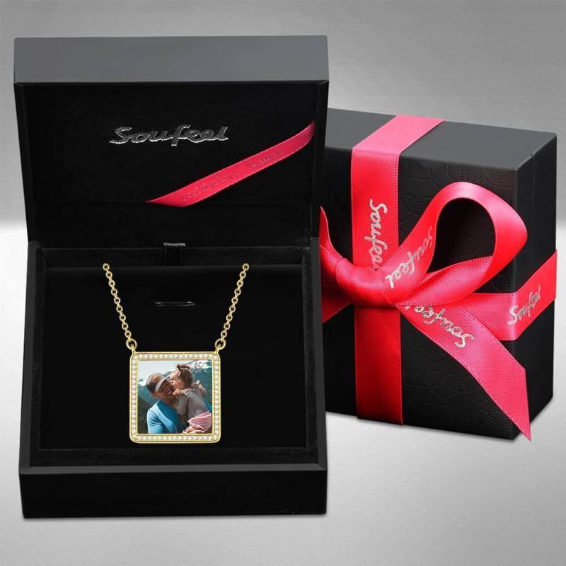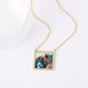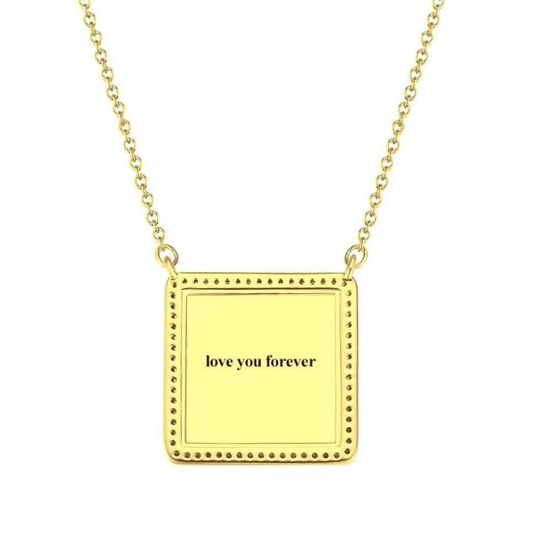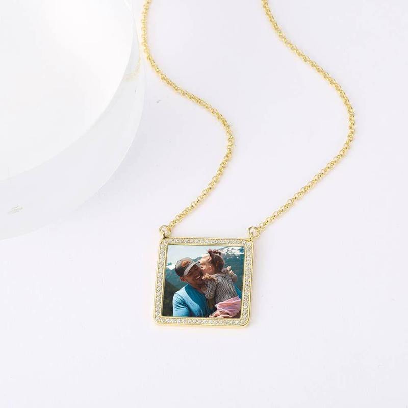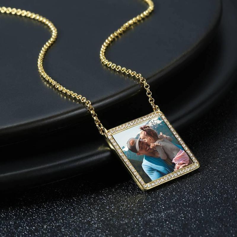 Foto Graviert Halskette Strass Kristall Quadratische Form Foto Halskette 14K Plated Gold Golden - Colorful