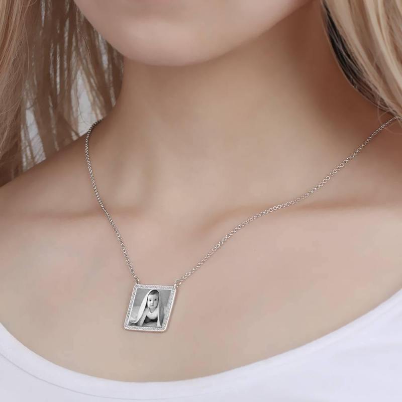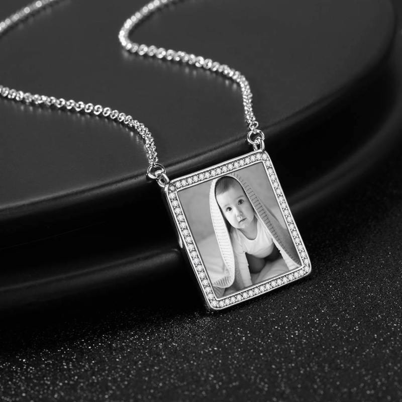Foto Gravierte Halskette Strass Kristall Quadratische Form Einzigartige Halskette Platin Überzogen Silber - Fotokopieren