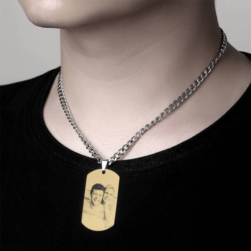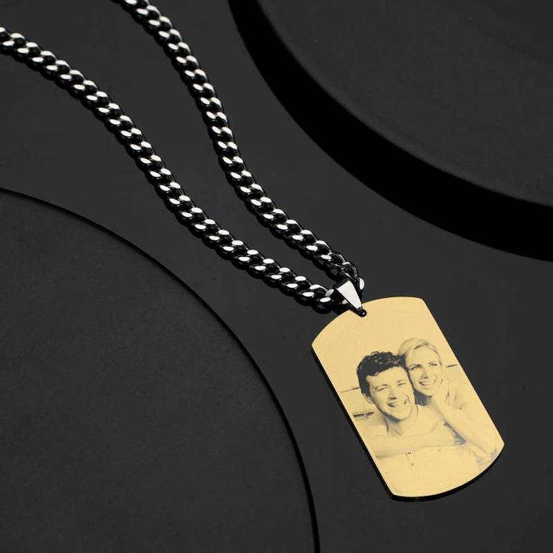 Foto Graviert Tag Halskette Mit Gravur 18K Gold Plattiert Edelstahl