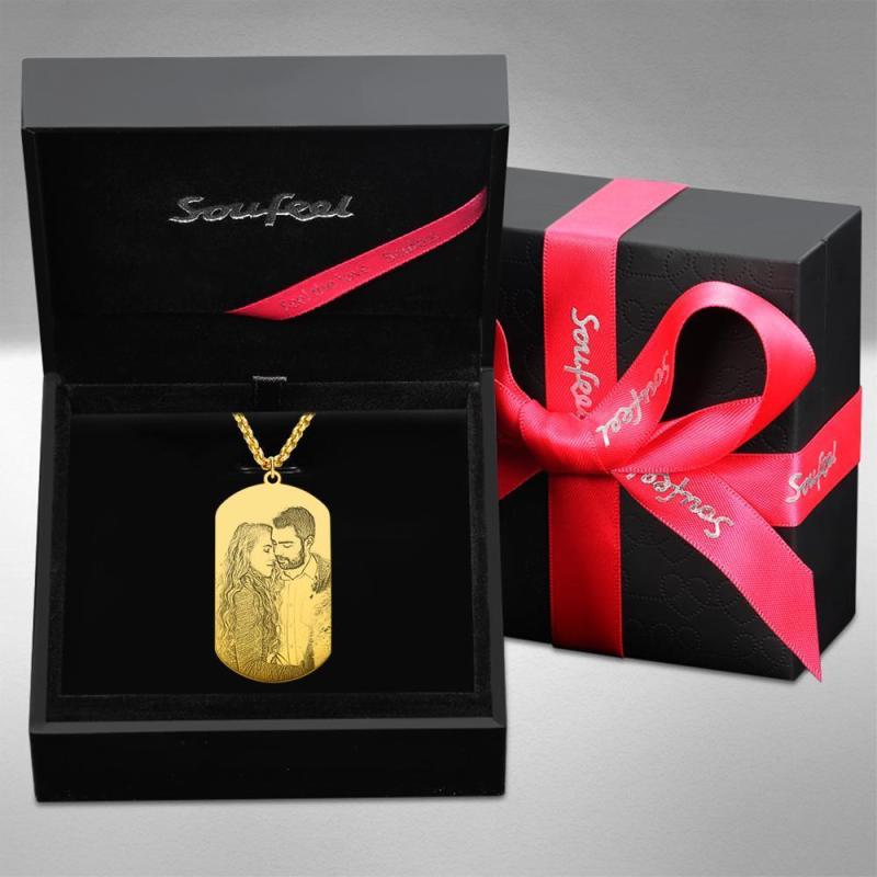 Foto Halskette Mit Gravur Halskette Gold Farbe Skizze Effekt Geschenke Für Ihn