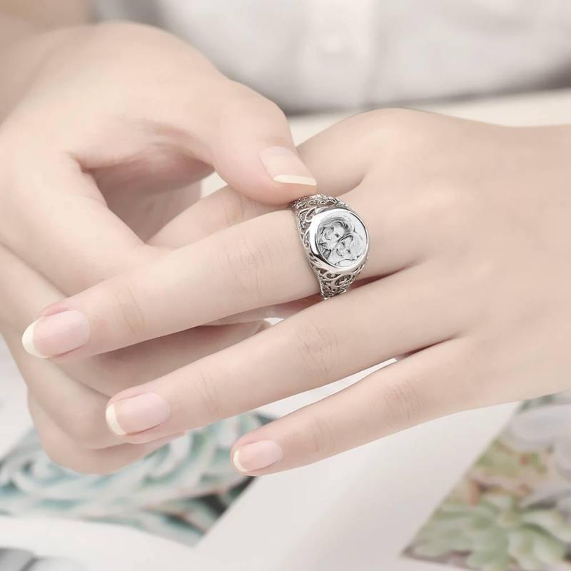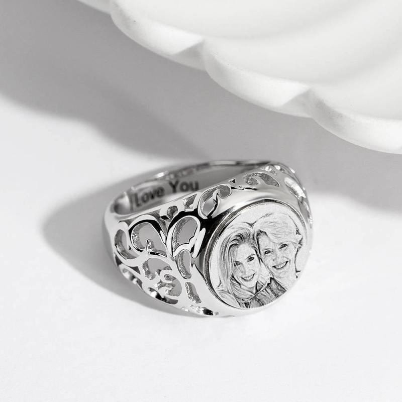 Foto-Ring Mit Gravur Platin Plattiert Silber Oval-Förmig, Beste Mutter