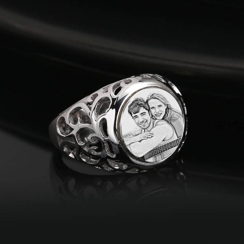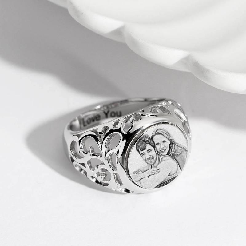 Fotoring Mit Gravur Platinplattiertes Silber Ovalförmig, Always Love You