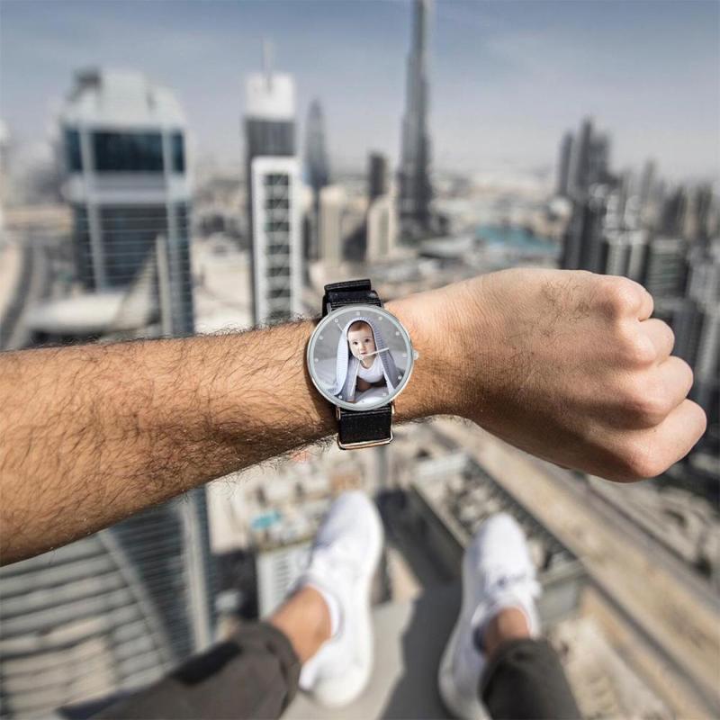 Vaters Geburtstagsgeschenk - Personalisierte Gravierte Uhr, Personalisieren Sie Ihre eigene Fotouhr mit Schwarzem Armband