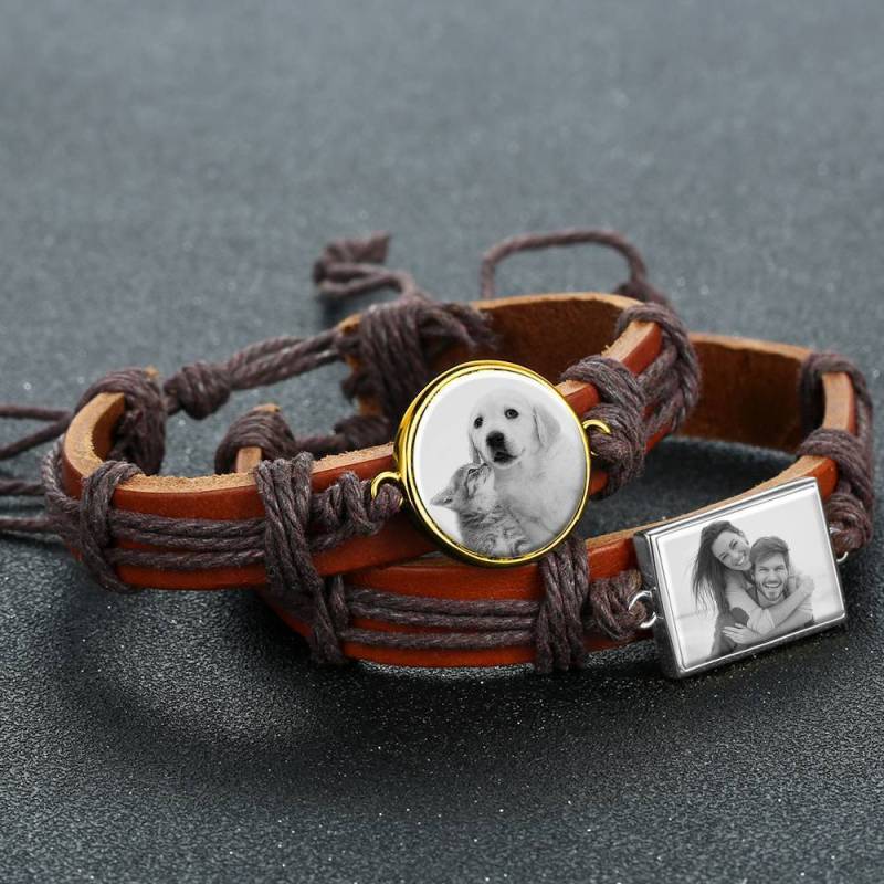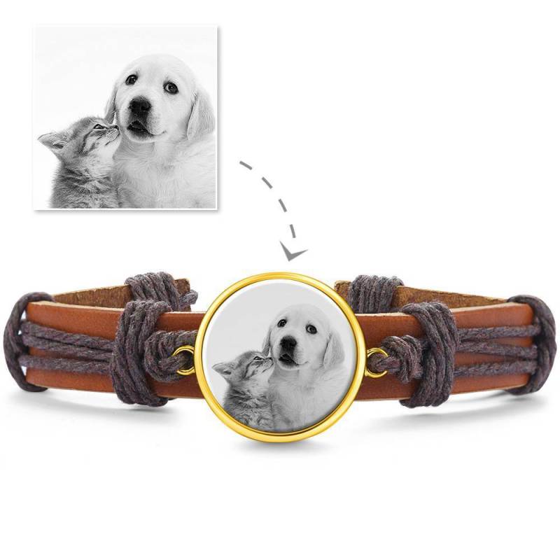 Foto Armband, Einzigartiges Geschenk Braunes Leder Quadratisch 14 Gold Vergoldet Golden - Fotokopieren