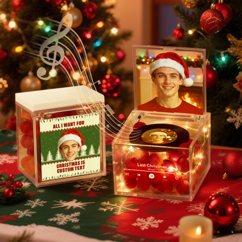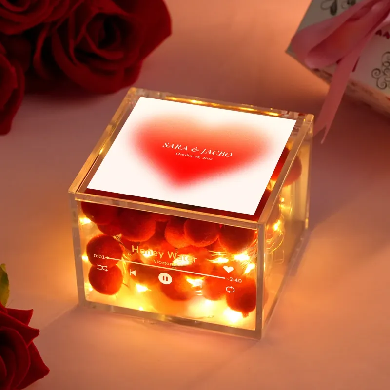 Premium Mini-musikrekorder Mit Automatischem Musikabspieler, Personalisiertem Foto Und Licht, Acrylbox