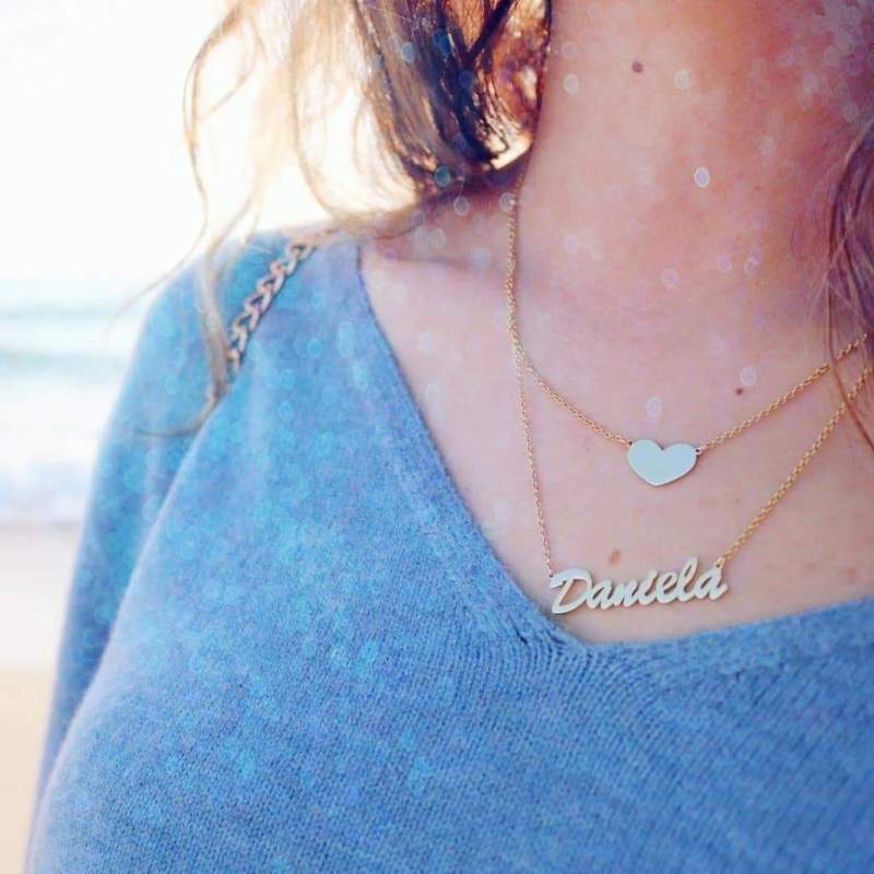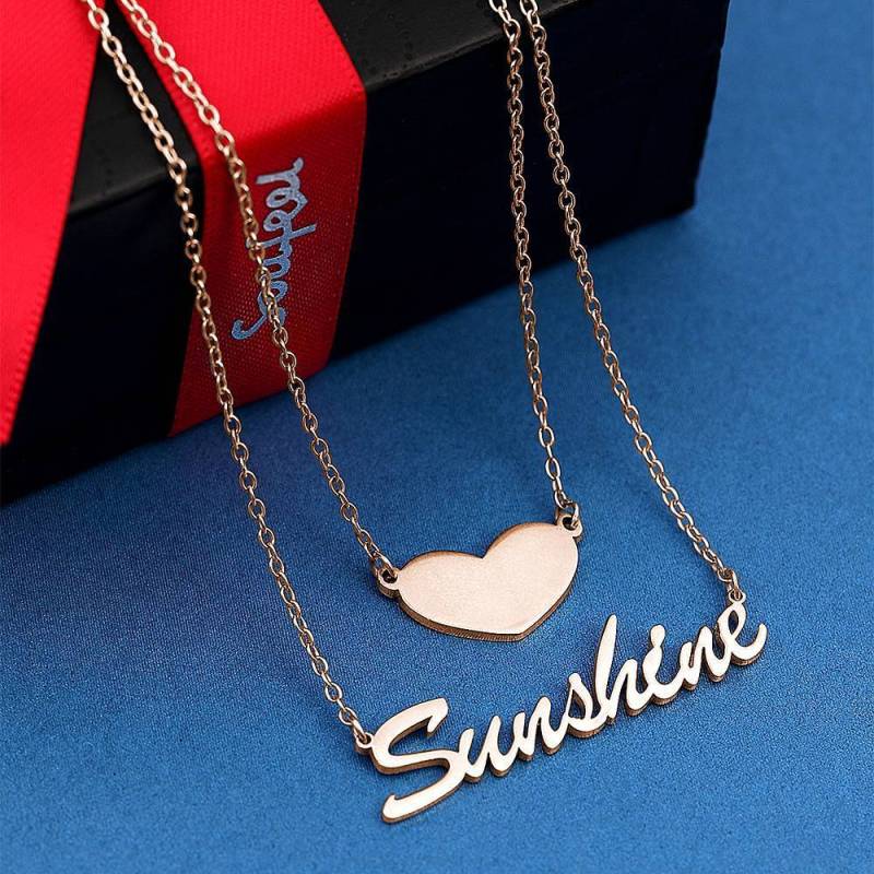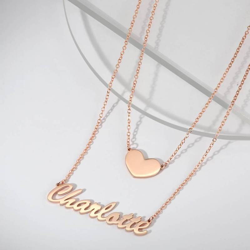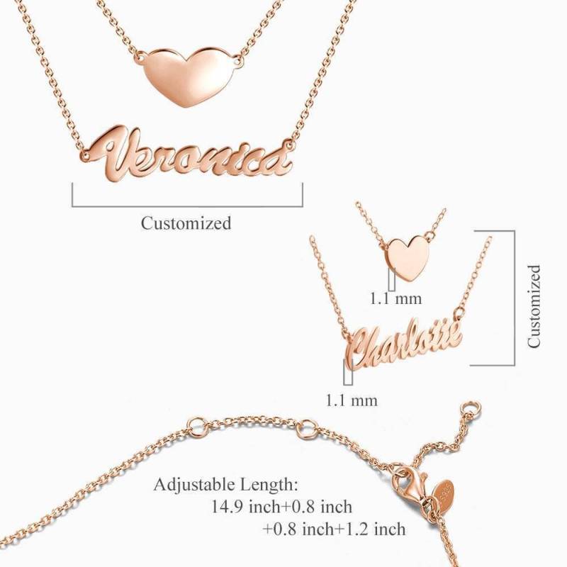 Zwei Schichten Personalisierte Herz Namenshalskette Rose Gold Plattiert Silber