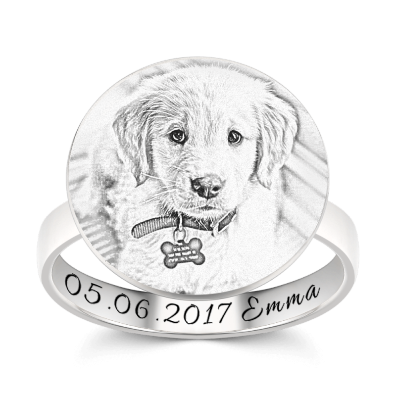 Runder Ring Mit Fotogravur Und Gravur Platinbeschichtetes Silber