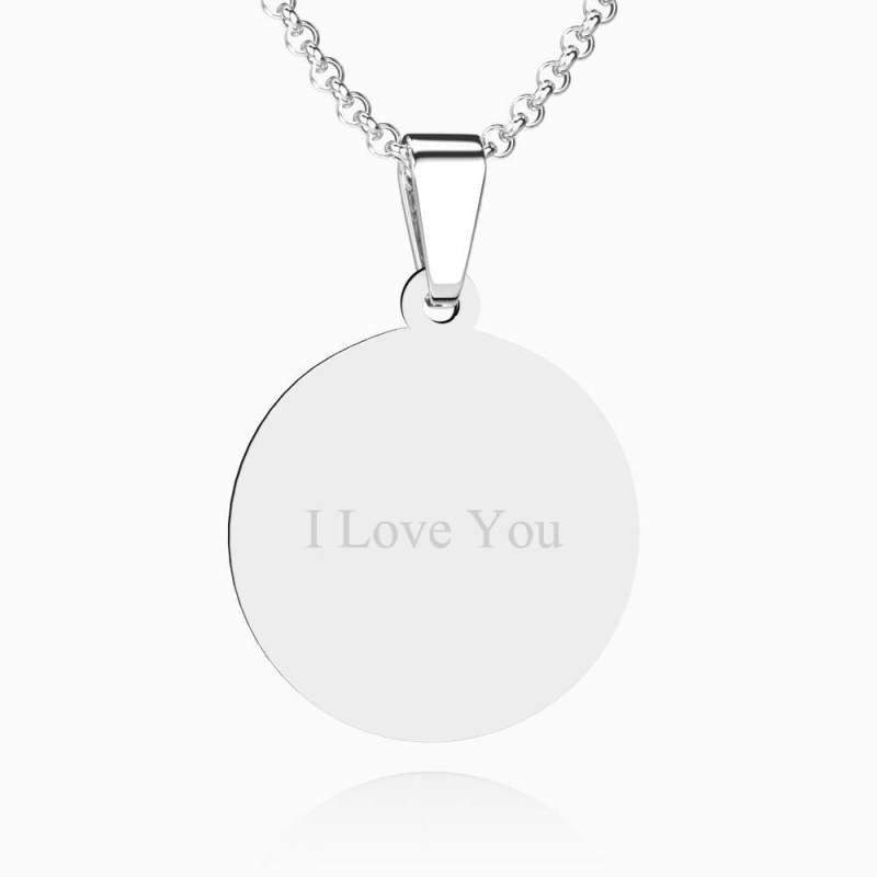 Round With Border Photo Engraved Necklace Stainless Steel Tag Pendant