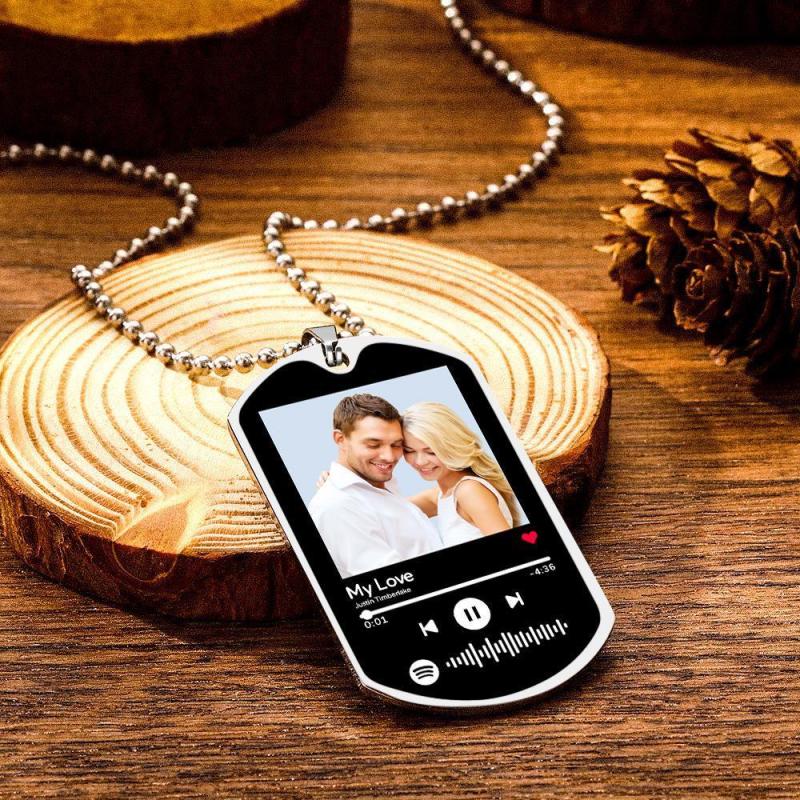 Scannable Custom Musik Code Halskette Graviert Musik Song Foto Halskette Memorial Geschenke Für Ihn