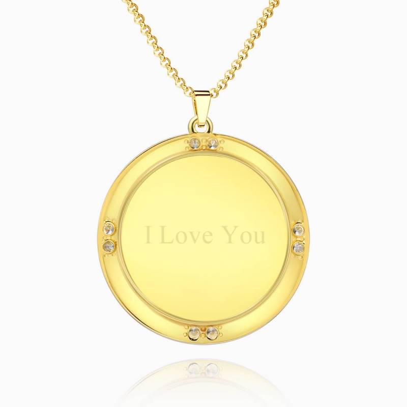 Silver Engraved Round Tag Photo Necklace 14k Gold Plated