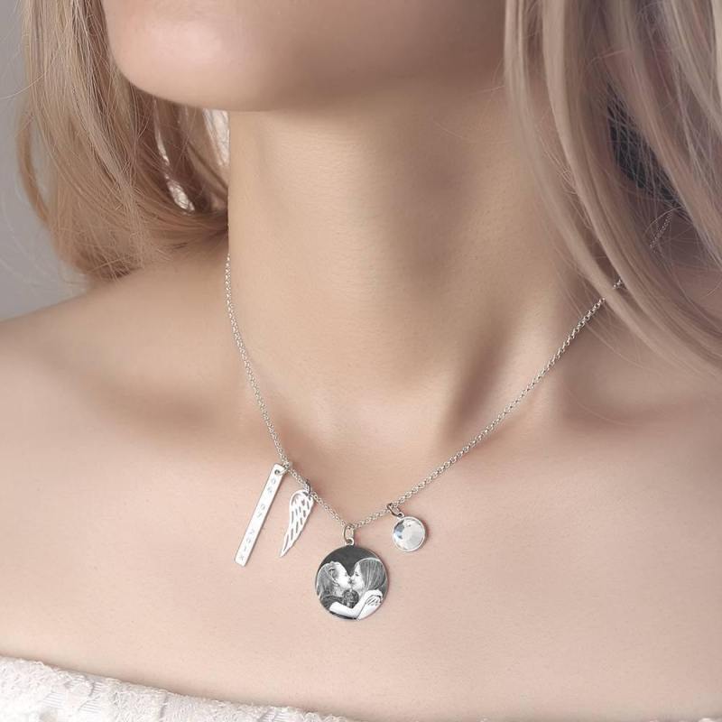 Frauen-Foto Graviert Tag Halskette Mit Gravur Silber