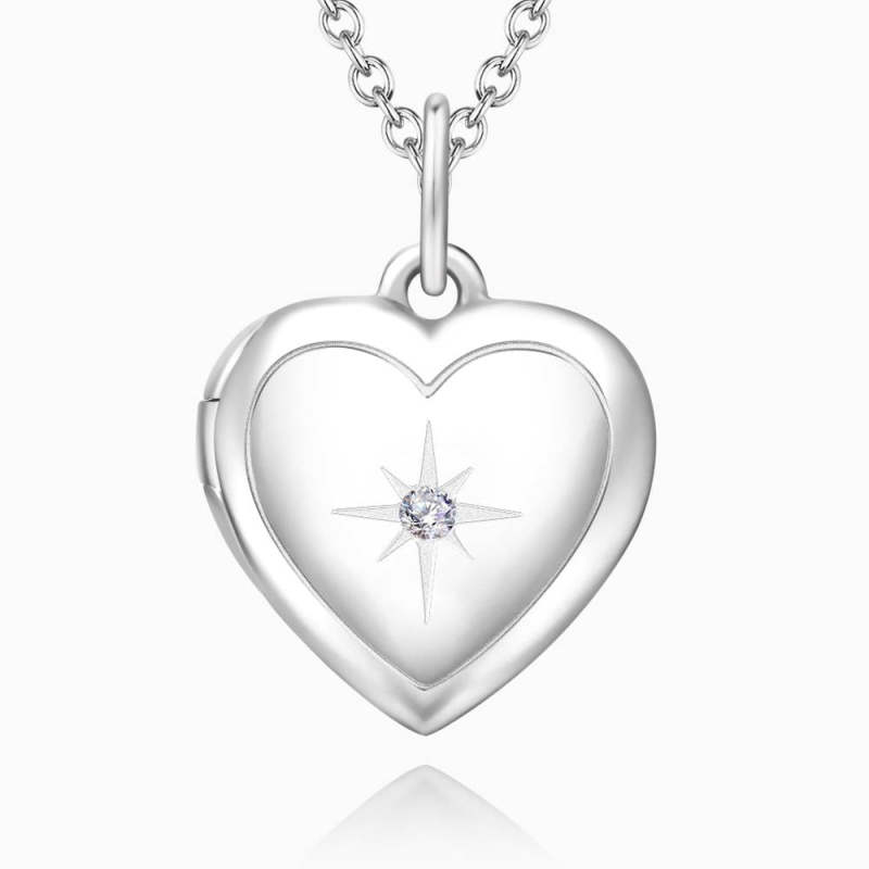 Star Printing Photo Locket Necklace Platinum Plated