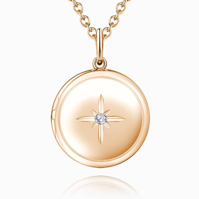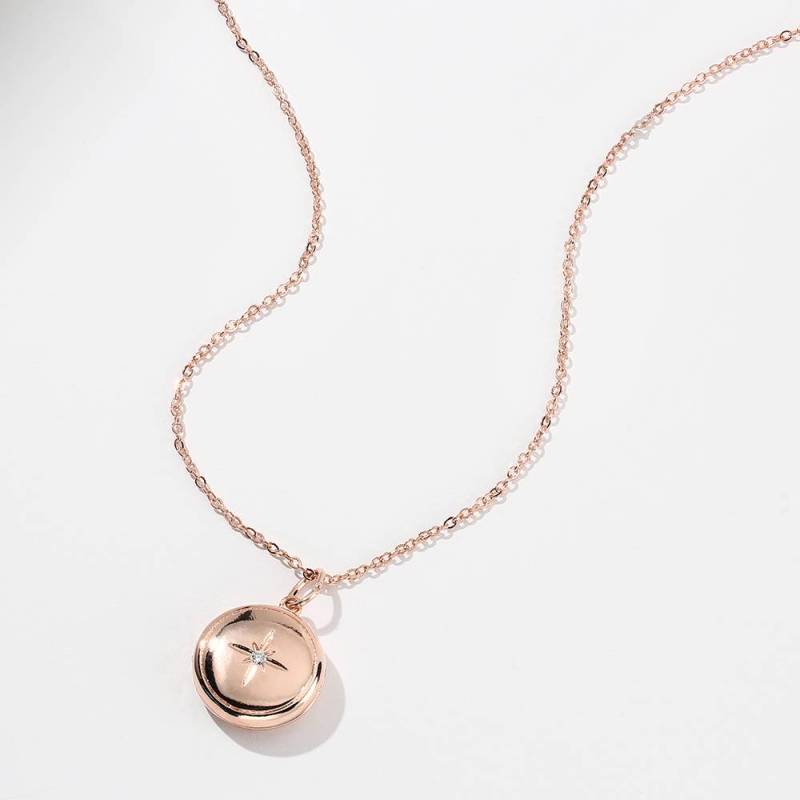 Star Printing Photo Locket Necklace Rose Gold Plated