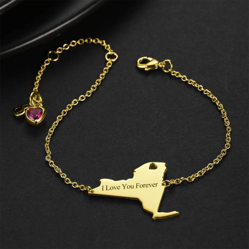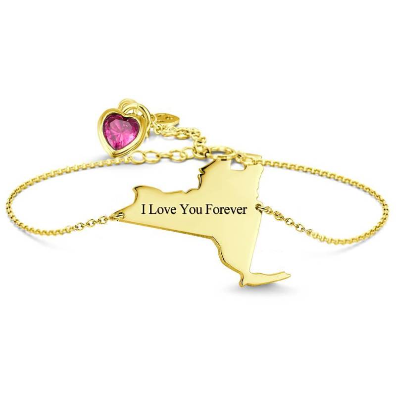Graviertes Us-staatsarmband Mit Individuellem Geburtsstein,14 Karat Vergoldet - Golden