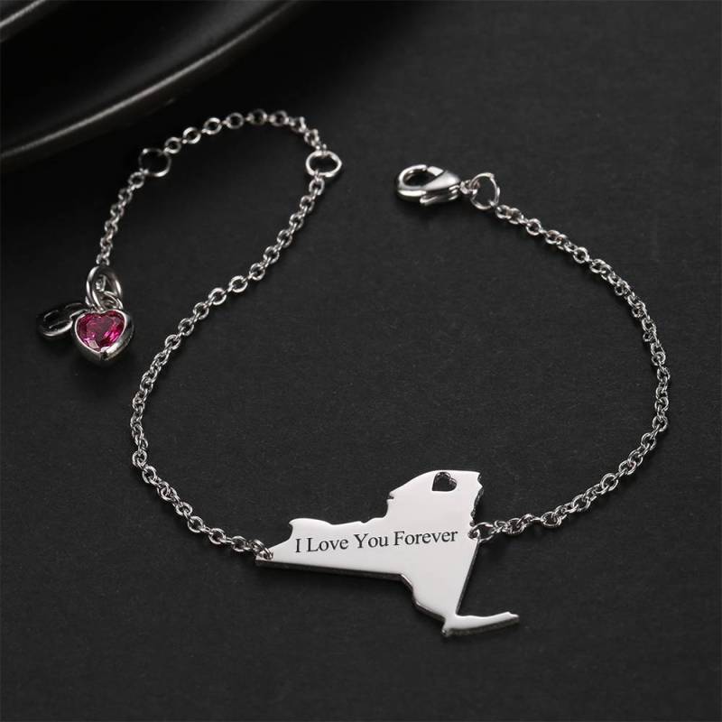 Graviertes US State Armband mit individuellem Geburtsstein, platiniert - Silber