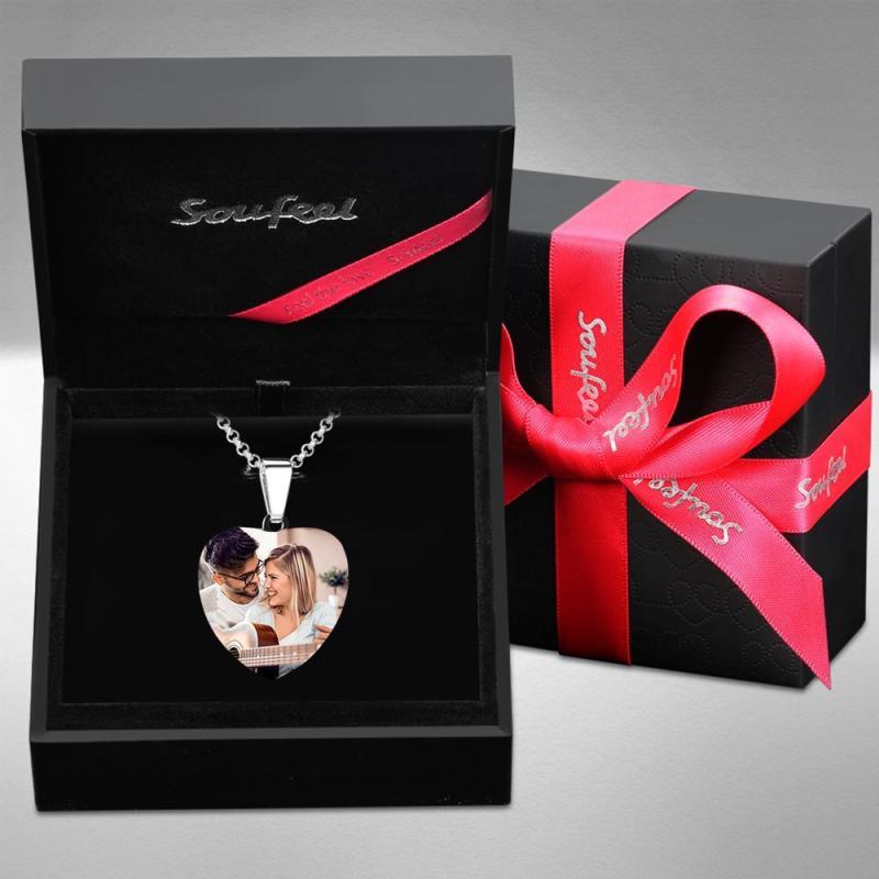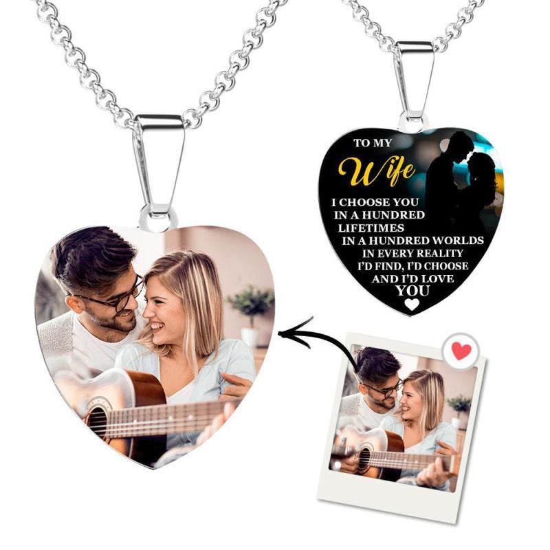 Tag Halskette Foto Graviert Halskette Geschenk Von Liebe Nachricht Herzförmige Jahrestag Geschenke