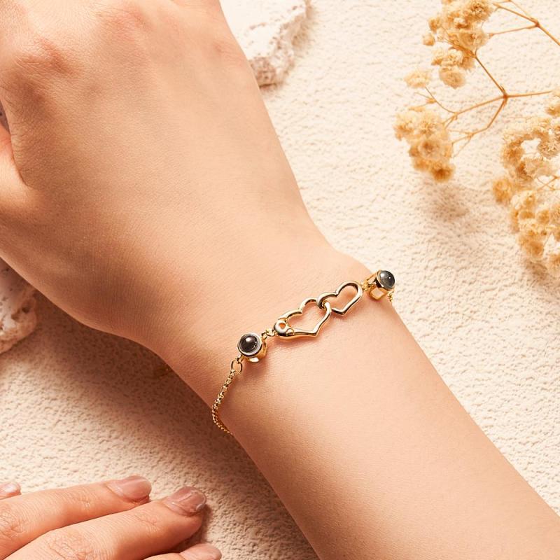 Armband Mit Zwei Herzprojektionen, Personalisiertes Bild Im Armband, Andenken, Schmuck, Trendiges Geschenk Für Die Beste Freundin
