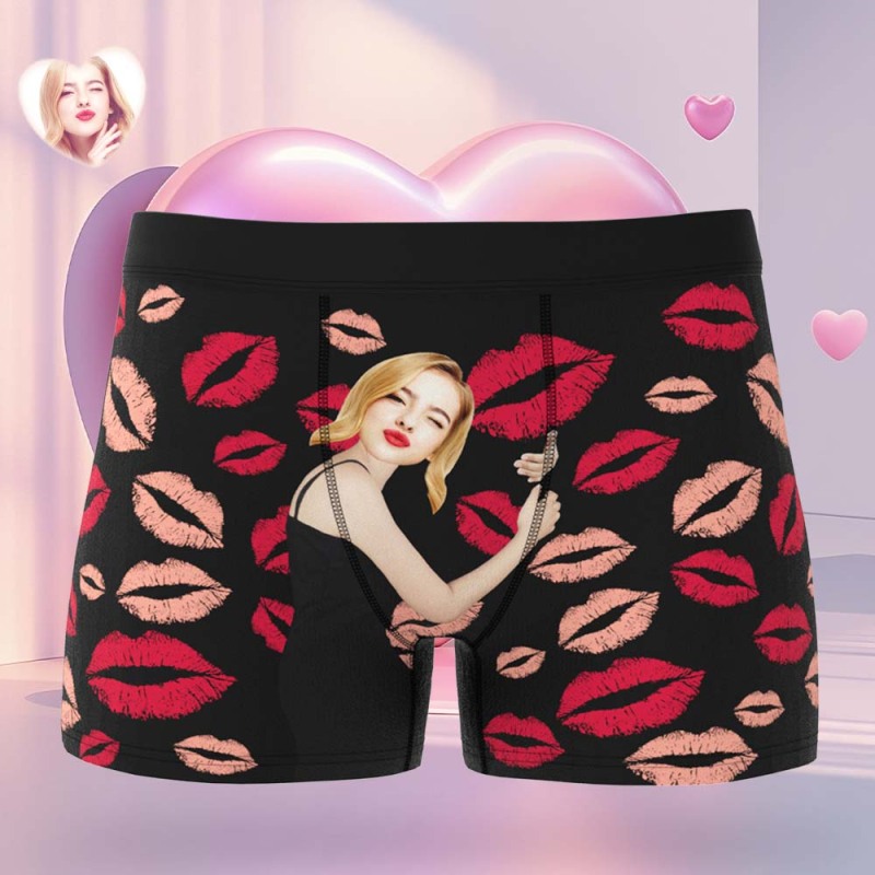 Valentinstagsgeschenk Benutzerdefinierte Herren Gesicht Auf Körper Boxershorts Personalisierte Rote Lippen Boxer Briefs