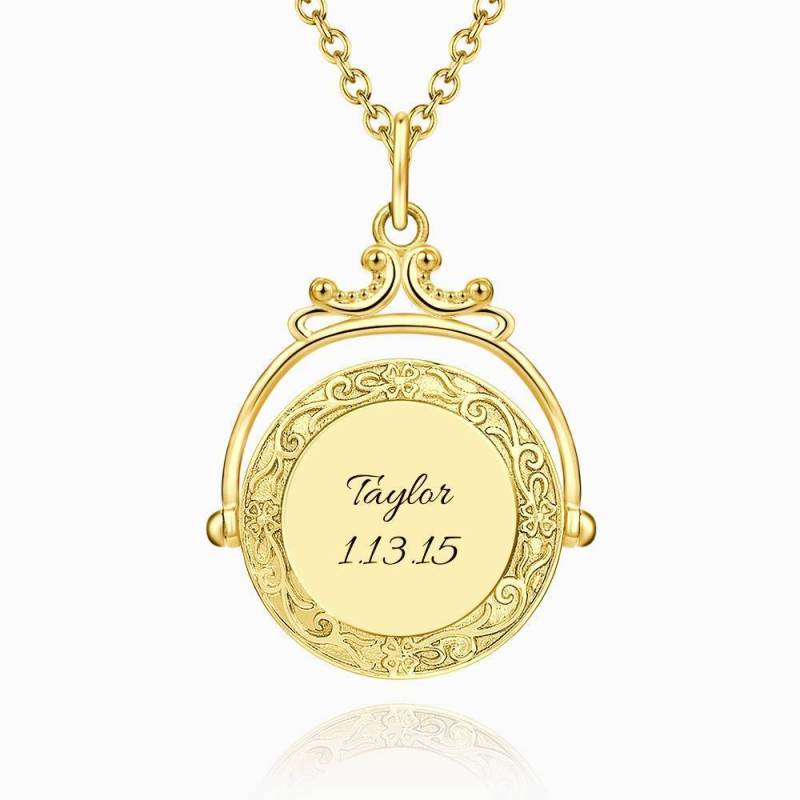 Vintage Geprägte Spiegel Foto Halskette mit Gravur 14k Gold überzogene