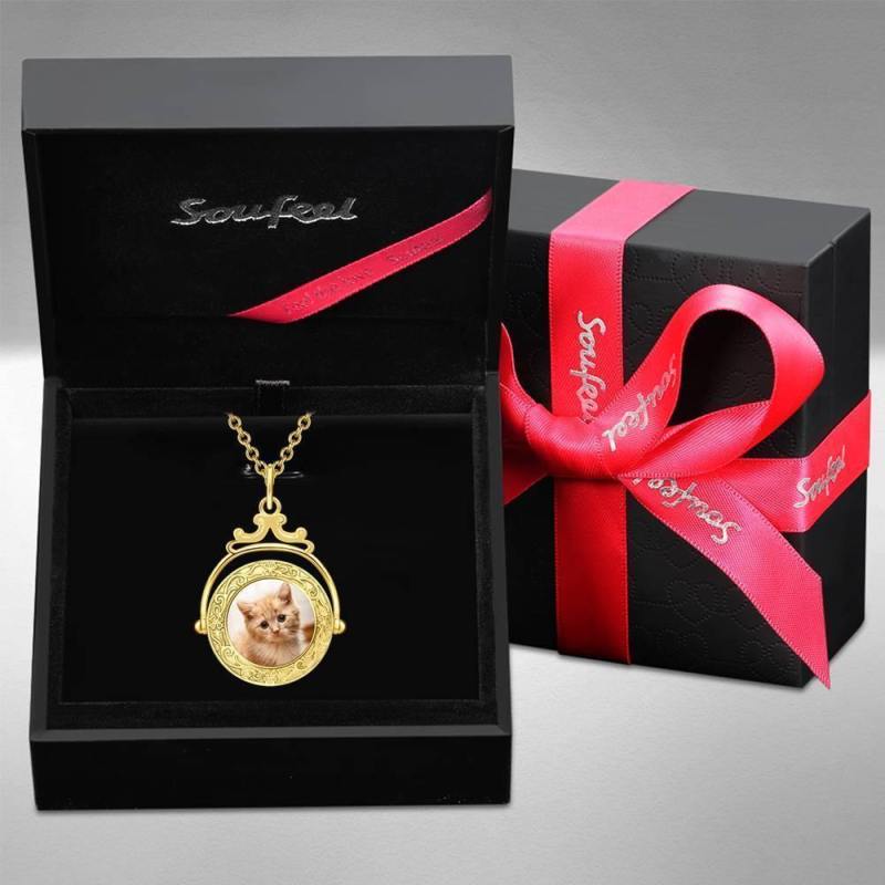 Vintage Geprägte Spiegel Foto Halskette 14K Gold Plattiert