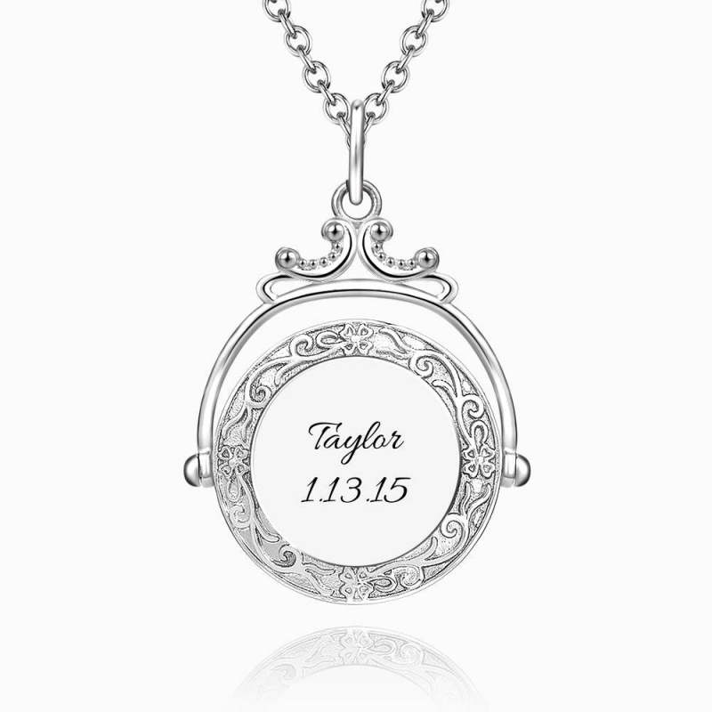 Vintage Embossed Mirror Photo Necklace Platinum Plated