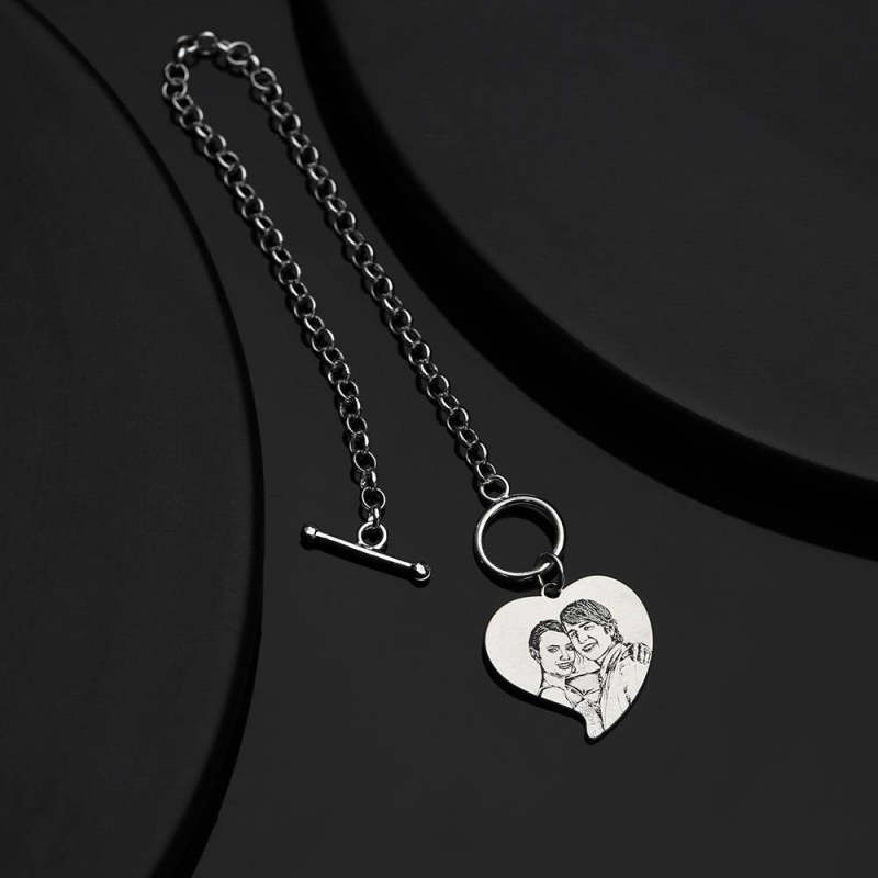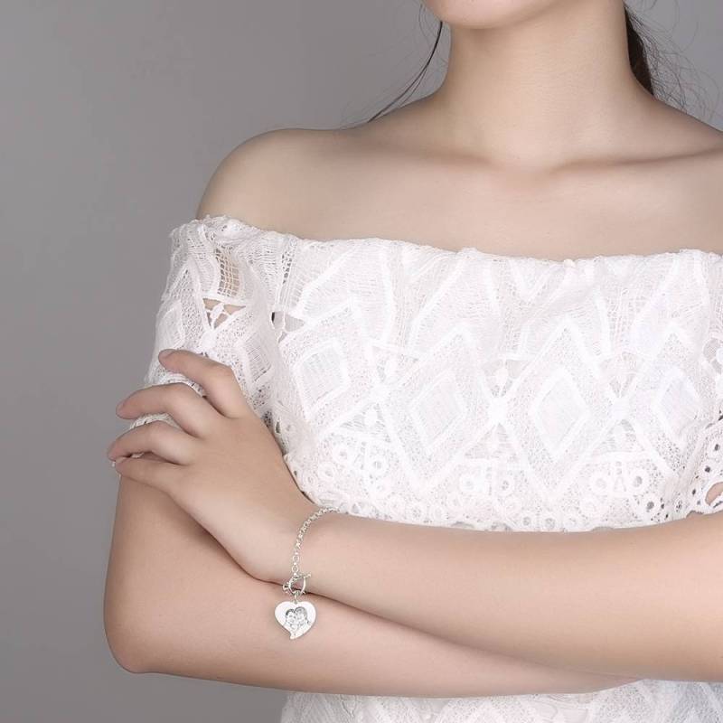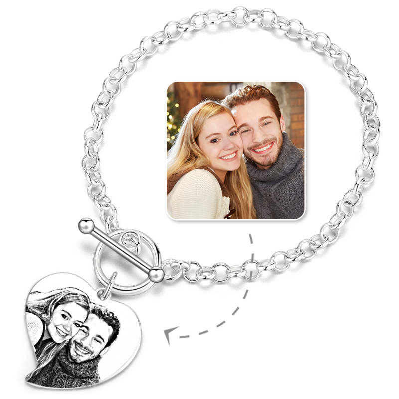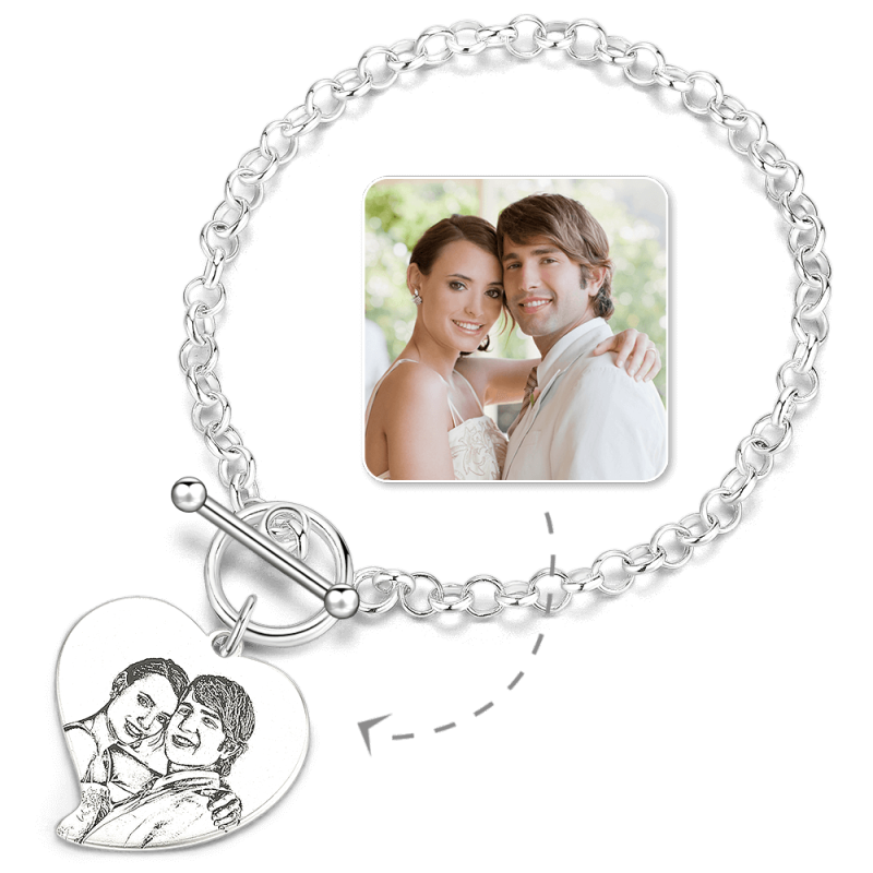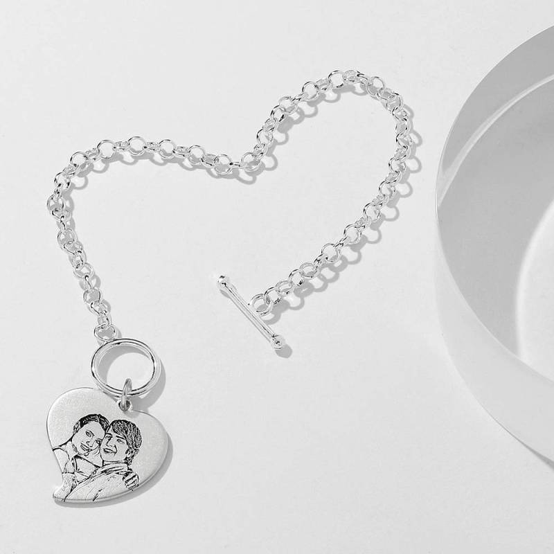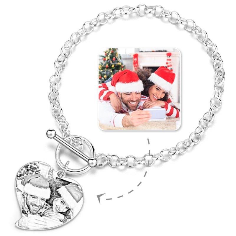 Women's Heart Photo Engraved Tag Bracelet With Engraving Silver For Her
