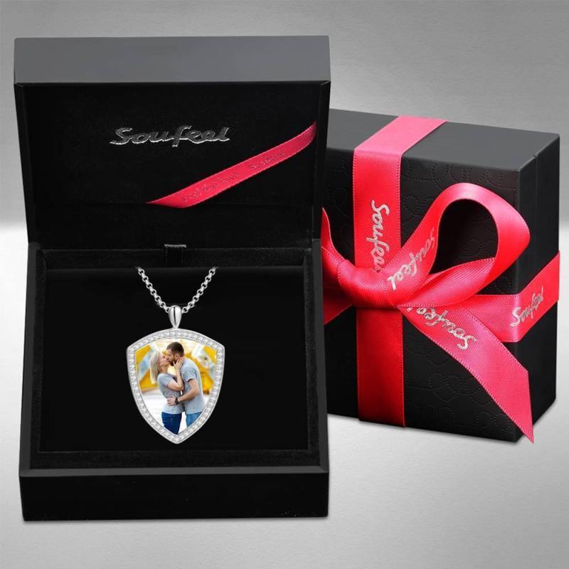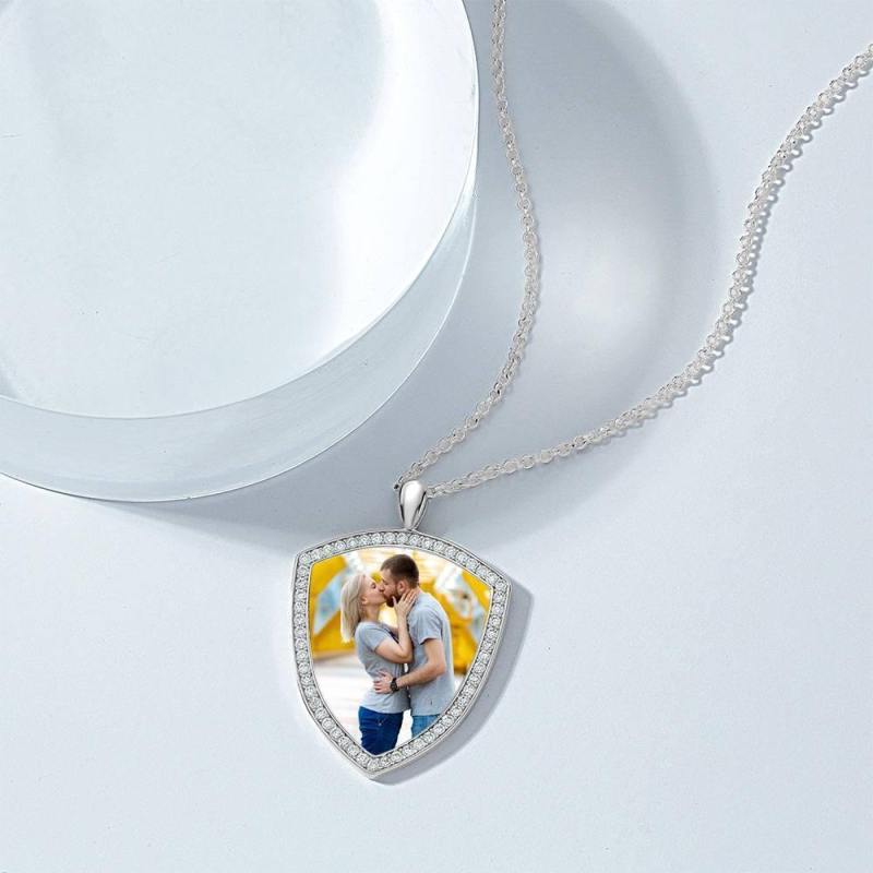 Damen Personalisiertes Foto Graviert Halskette, Strass Kristall Schild Form Foto Halskette Platin Plattiert Silber - Colorful